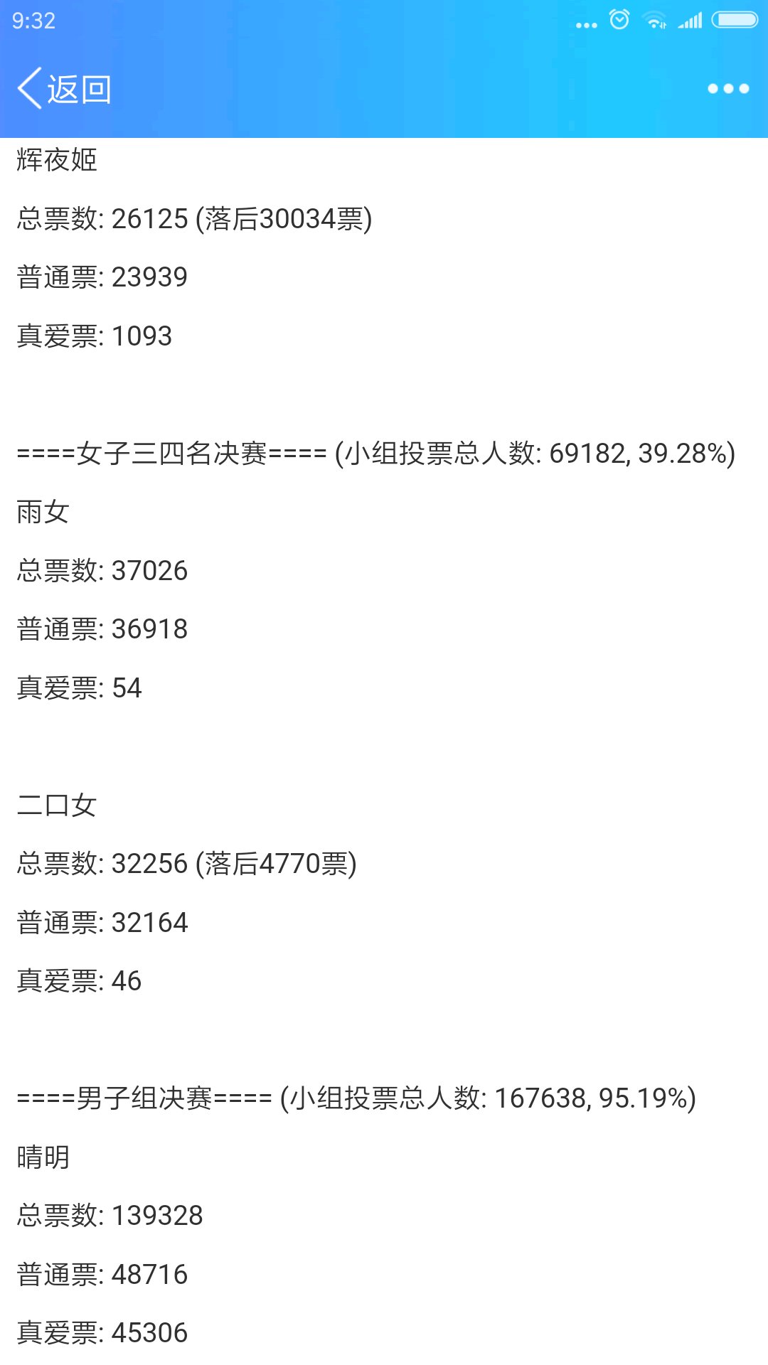 不过雨女居然比二口女强!这是我没有预测到的果然前几天拉票拉出感情了!