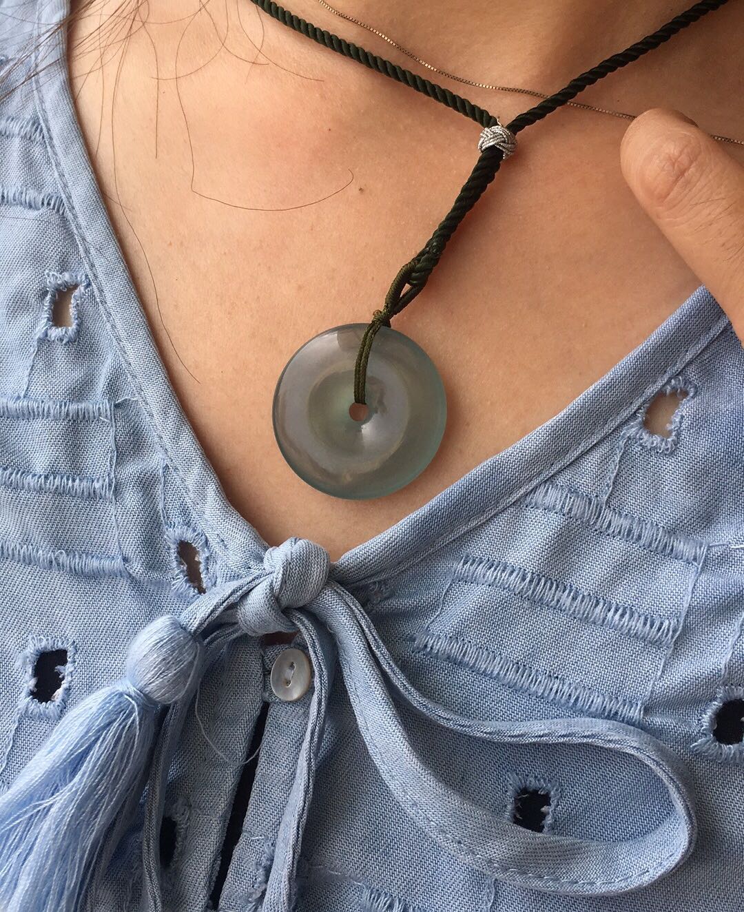 扣扣挑光线,不好配戴,上身怪怪的,底色跟肉色混在一起……反正不是我的肉肉,黑就黑了,此扣扣已经沦为把玩件了……
