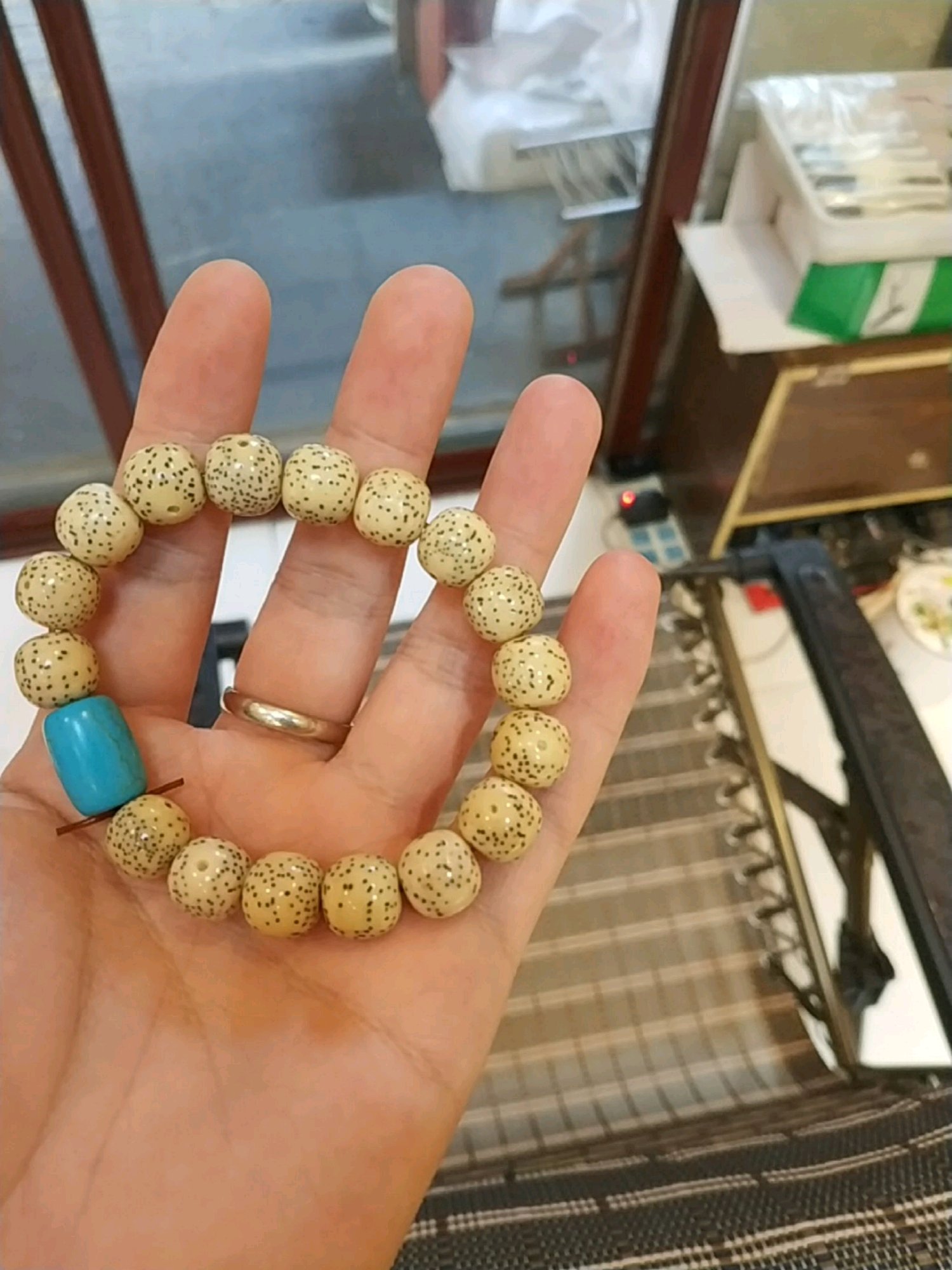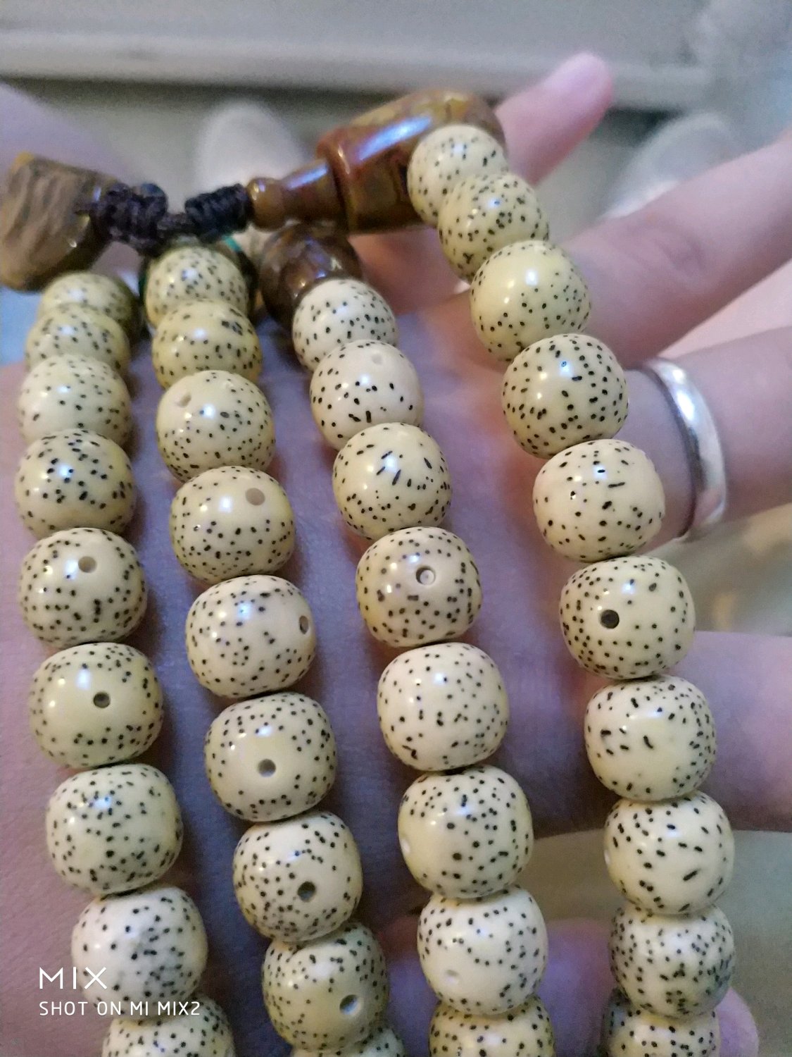 刚拿到手有大概20颗颜色是偏白的,正好也多出了17颗,我就把最显眼的17颗白色挑出来做了手串。