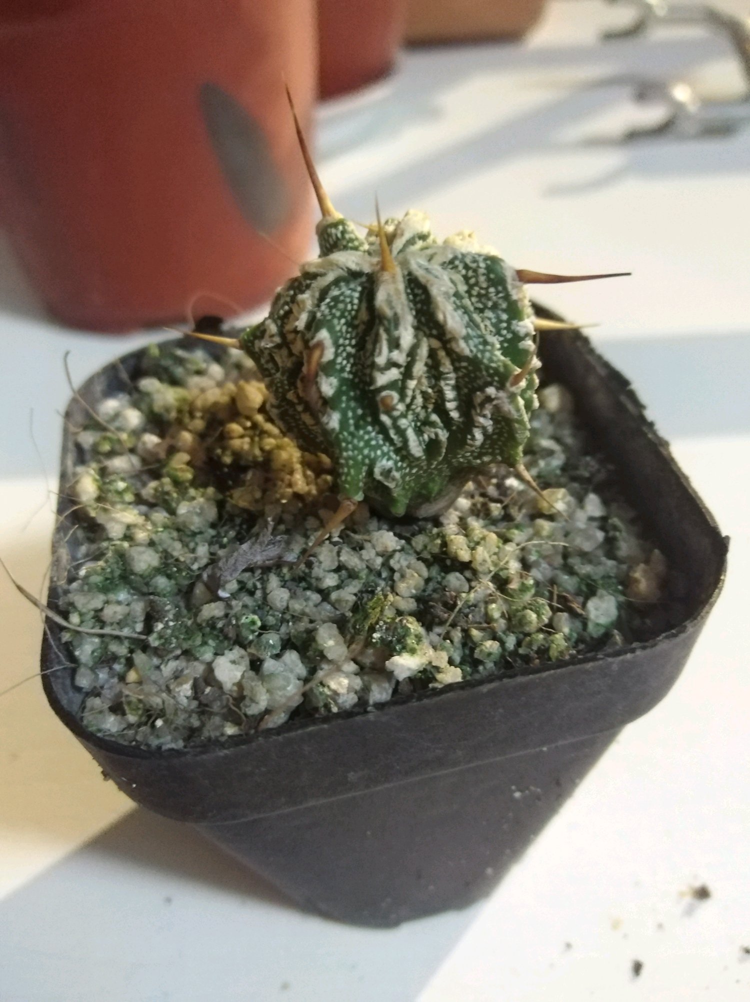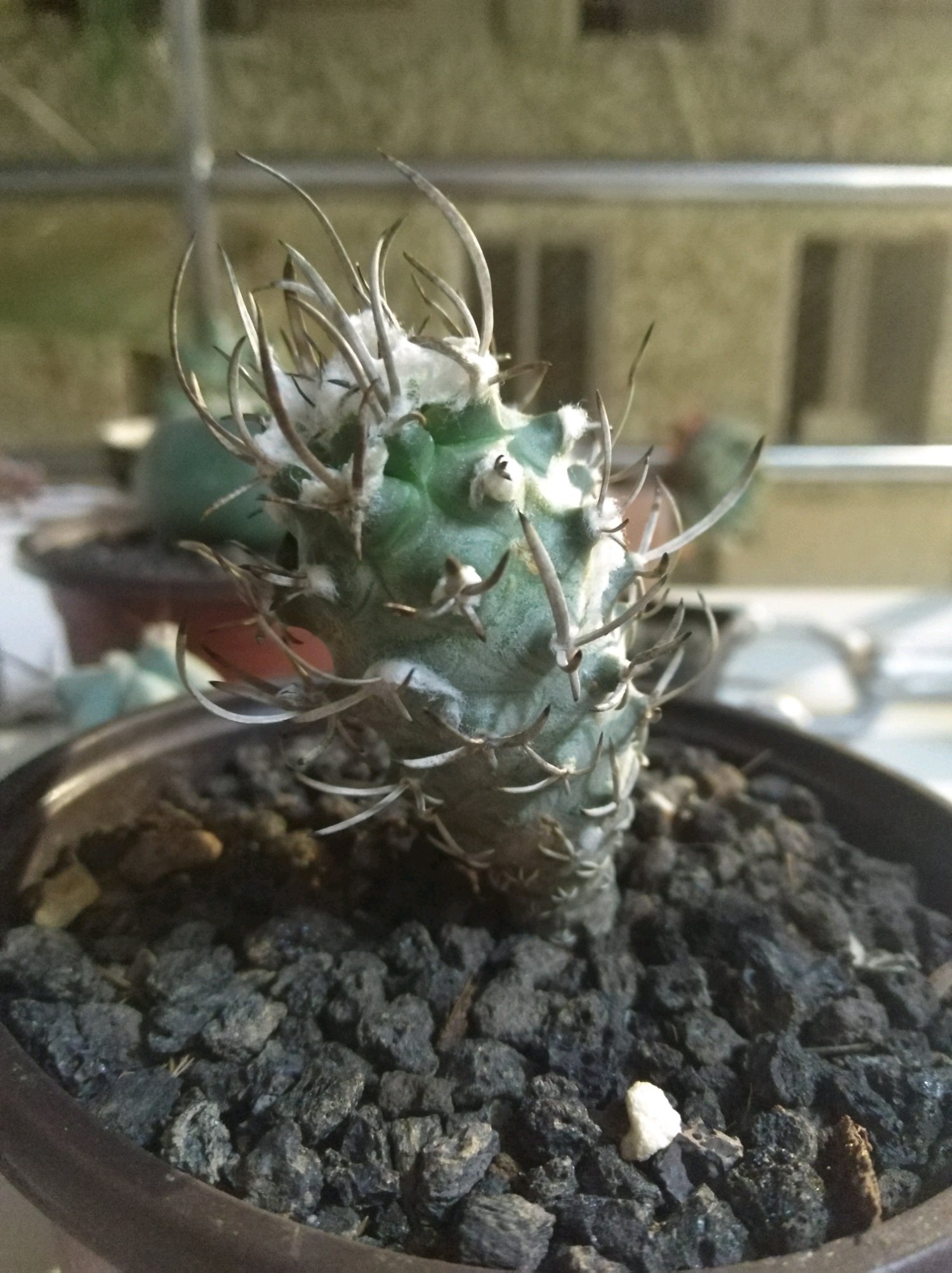 新入的球。厦门,哈哈,这里的夏天有9个月。第一个老板说是坂田大疣银(白肌)。。快开花了,好开心(●°u°●)」养球10年。