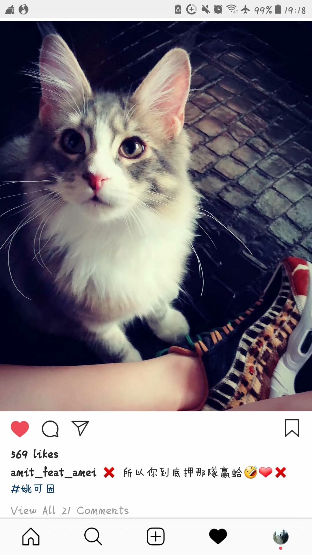 回复 若岚kitty :哈哈 你可能没看清我说的是什么 我说很久没看阿妹发🐶的照片了 你说这照片露了脚的照片 我以为是🐶的脚丫子😂