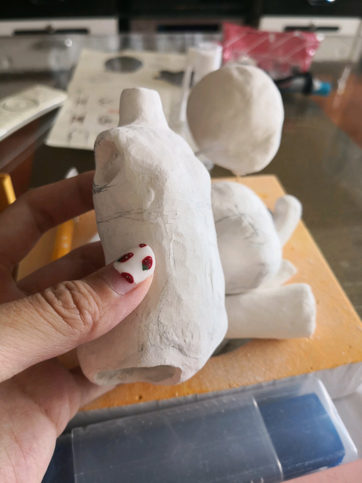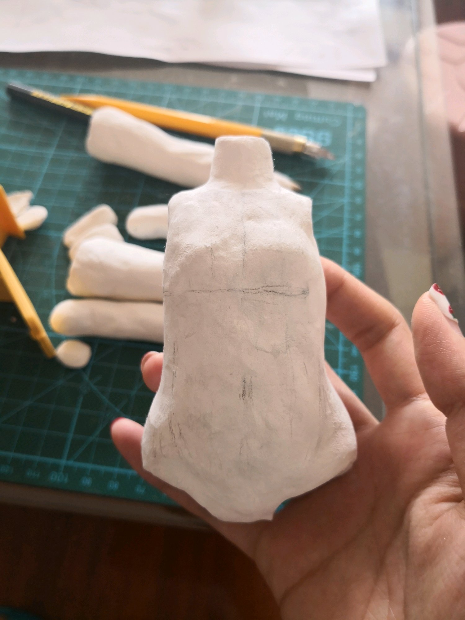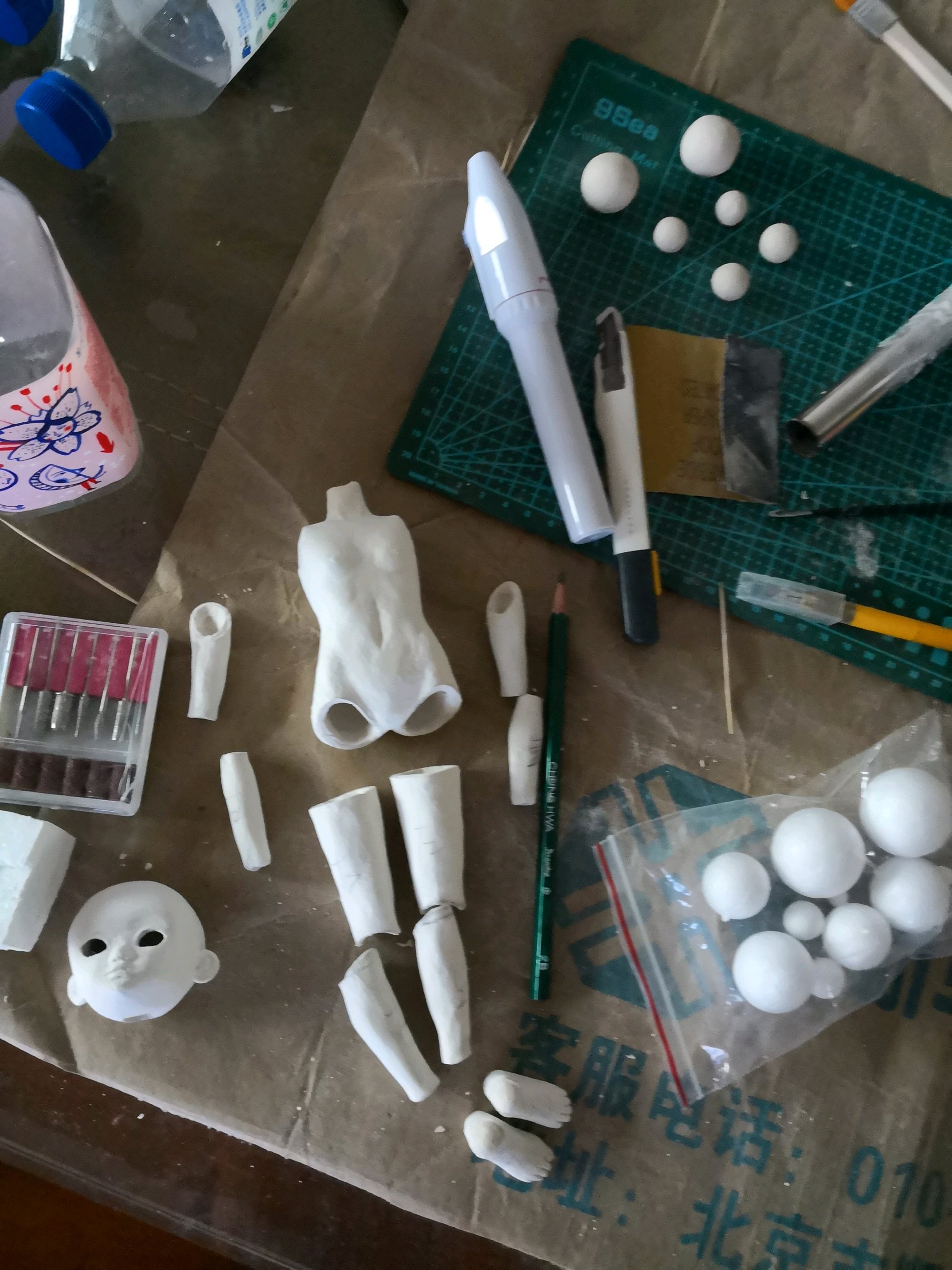 这次做好懒。。。一直没有进展。另外躯干和四肢这次包完土以后一直感觉形状很怪,我觉得胳膊腿直接用吸管或者小棍做成圆柱之后再塑型可能比较好。。。。。