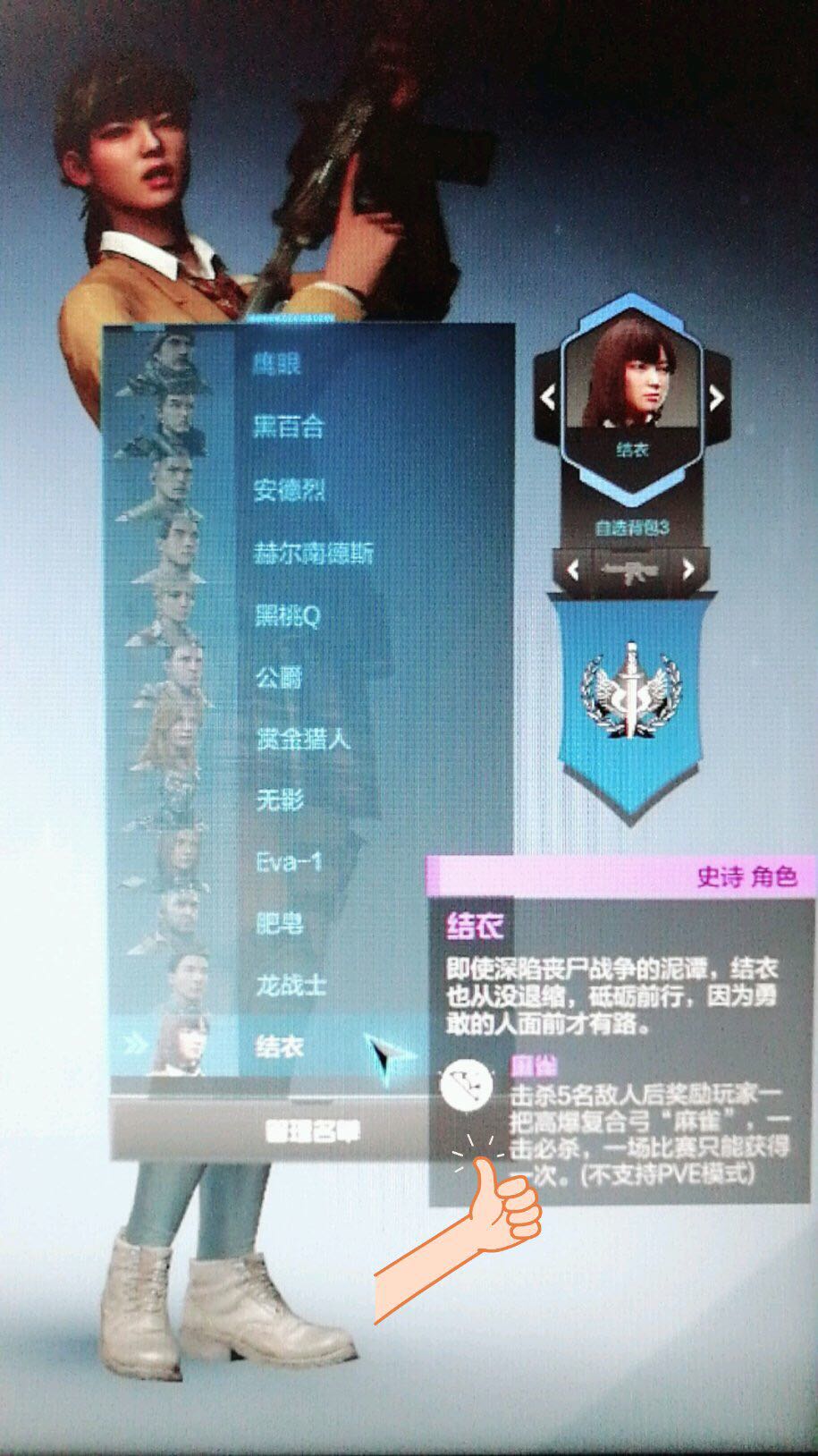 有一定几率回复子弹,好像是5%,刚刚氪的,加全部装扮一共800左右,肉疼。这应该是现在除了军需官以外最贵的角色了。
