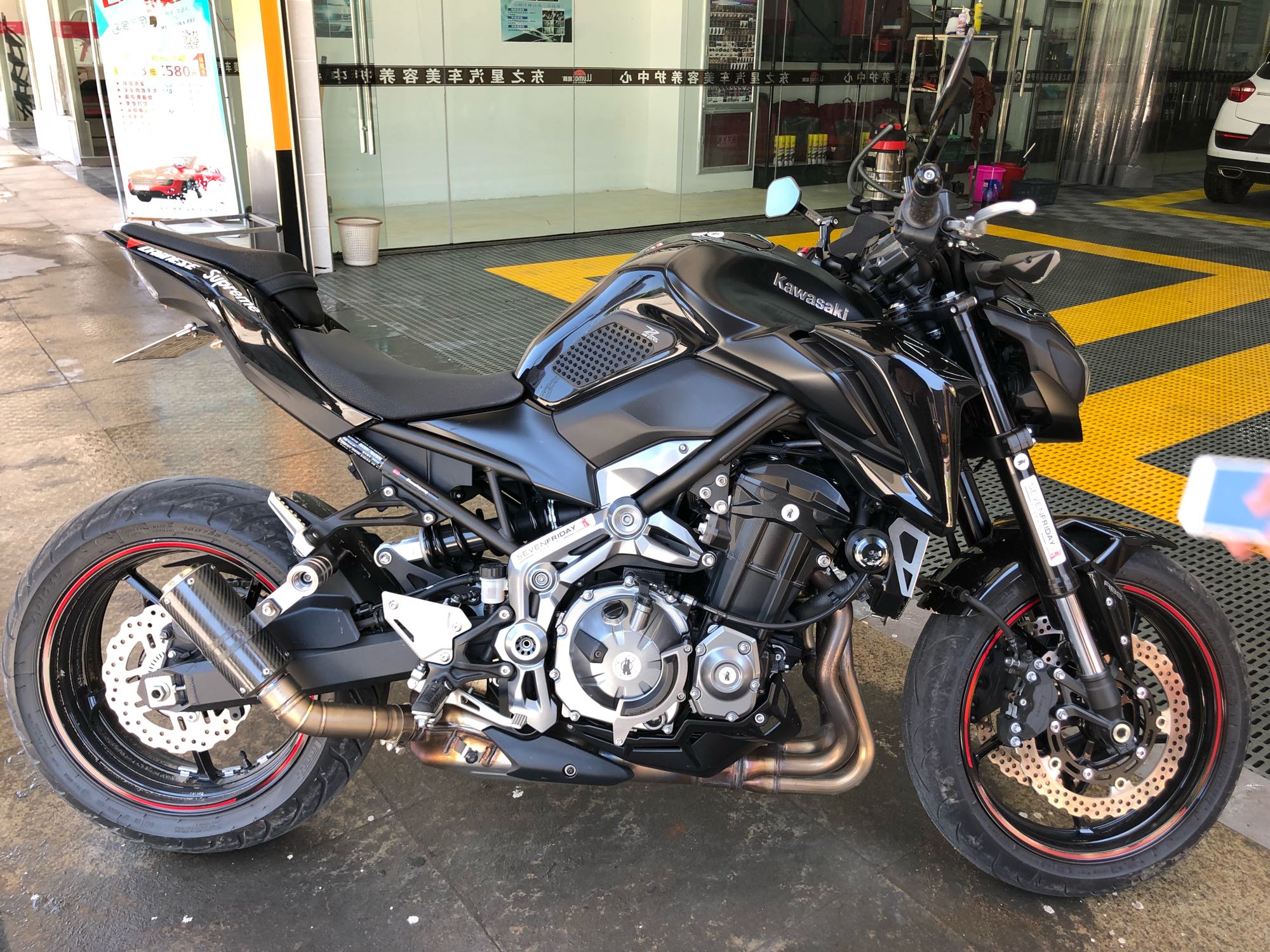出17年大贸川崎z900,5700+公里已上牌,加装防摔和水箱护网,改装反光镜,短尾,改装排气不出,恢复原厂排气,其余原厂件都在,价格9xxxx。