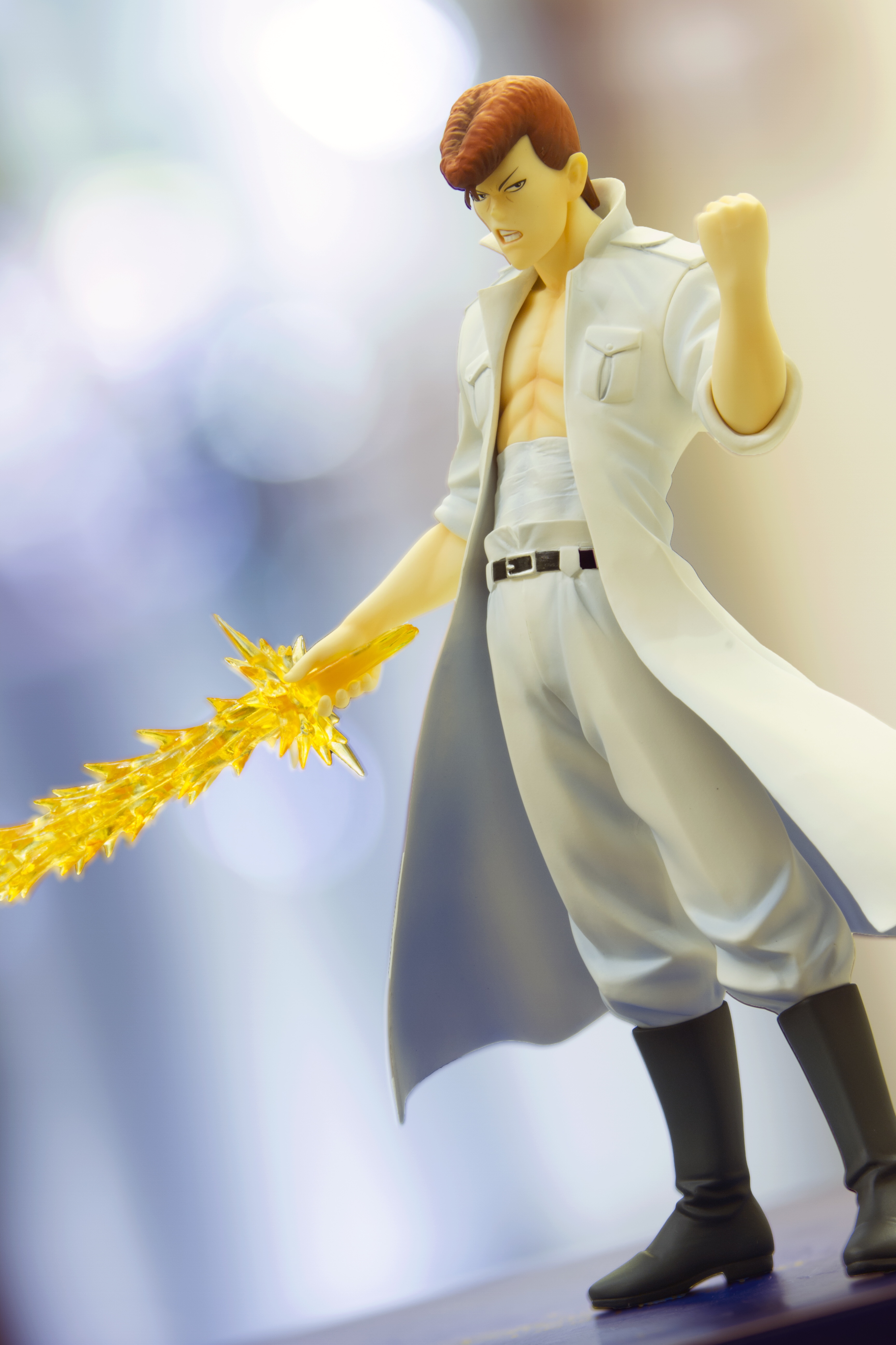 回楼上各位:1. 浦饭头是球形关节链接,可以左右动,校服外套可拆。小宠物和浦饭头有磁力吸附。 2. 桑原本体不可动,灵剑可以拿下来。3. 藏马可以替换右臂,换成拿蔷薇的手型。蔷薇可拆。4. 飞影有替换脸,替换成张开邪眼的,右手臂可以替换。5. 妖狐藏马还没入手,不过看官图可以替换右手臂