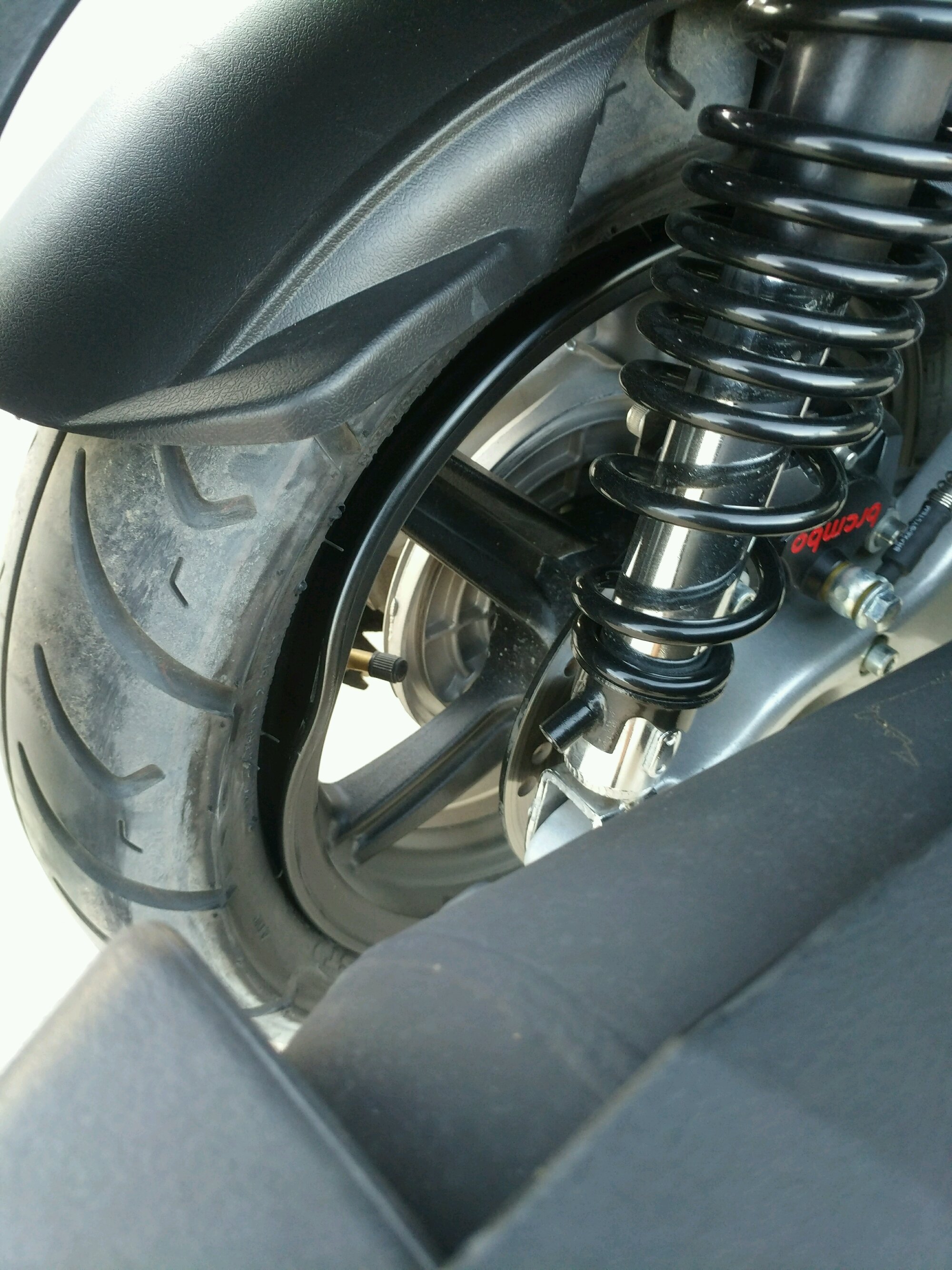 轮胎小了!我那天也是带人,前轮撞了,哐当一声,下车检查没事!我是14寸轮胎,本田弯刀