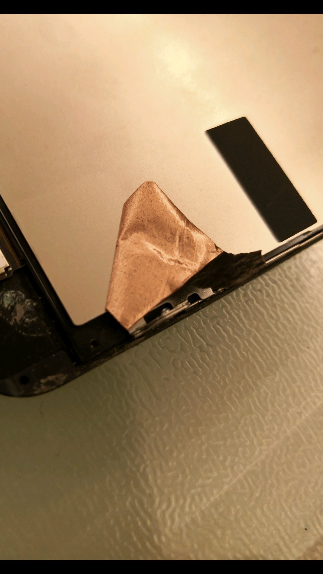今天换屏幕的时候,发现前置摄像头排线模块有一块黑色的“胶带”(貌似是薄铜片),贴在屏幕背板上的,我就直接扯断了。请教这块黑色“胶带”有什么用?