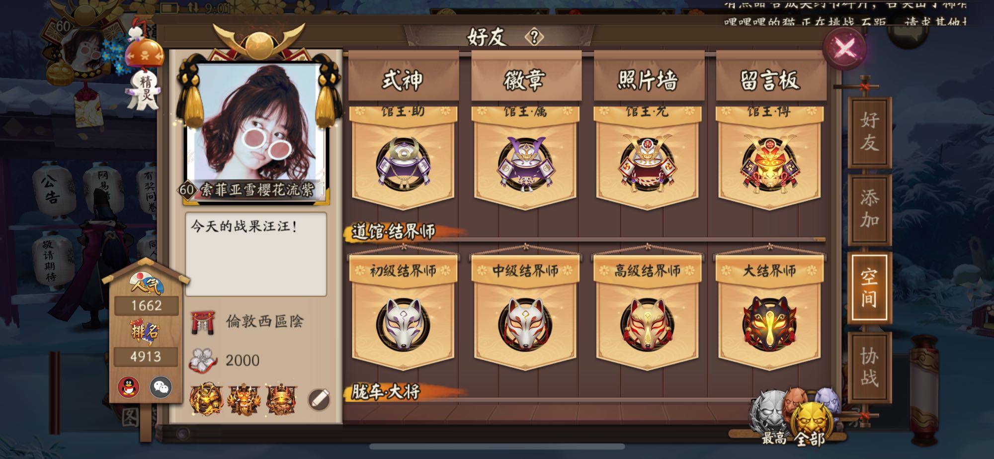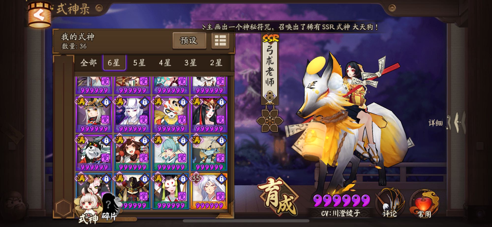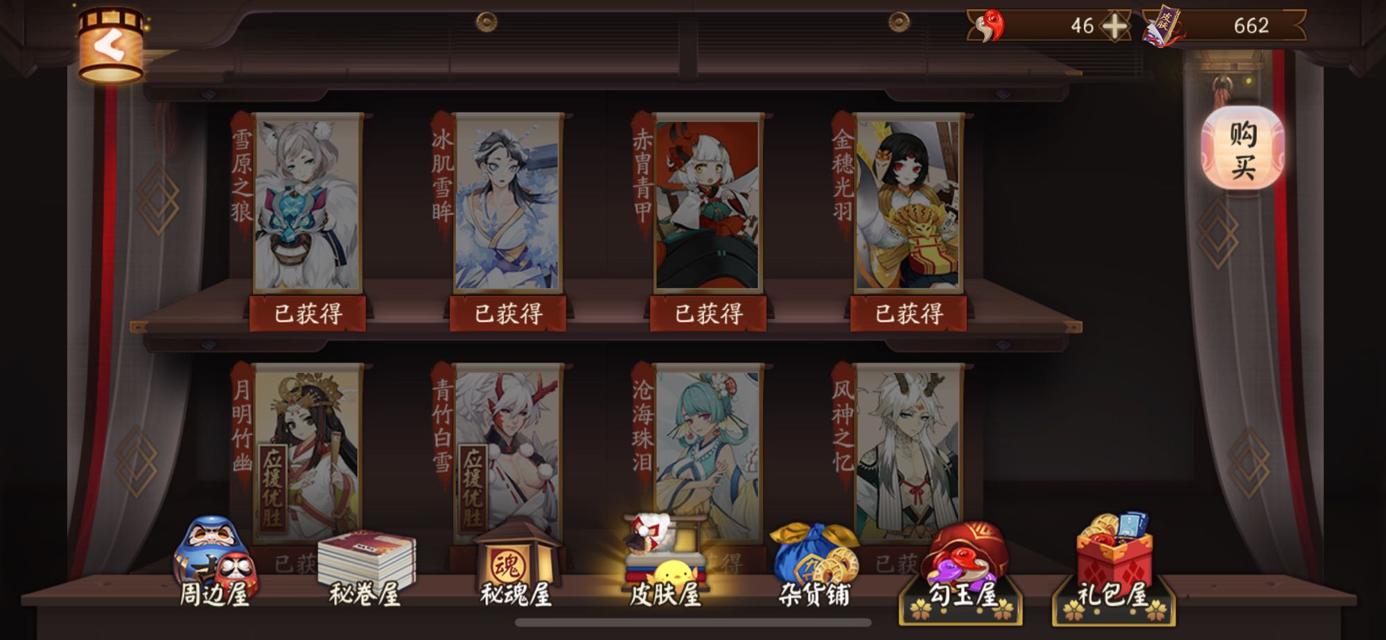 这是印记和皮糊,好看的皮糊基本都买了,ssr技能都是满的,sr还差几只技能没满,新的犬夜叉和杀殿也抽出来满技能了。