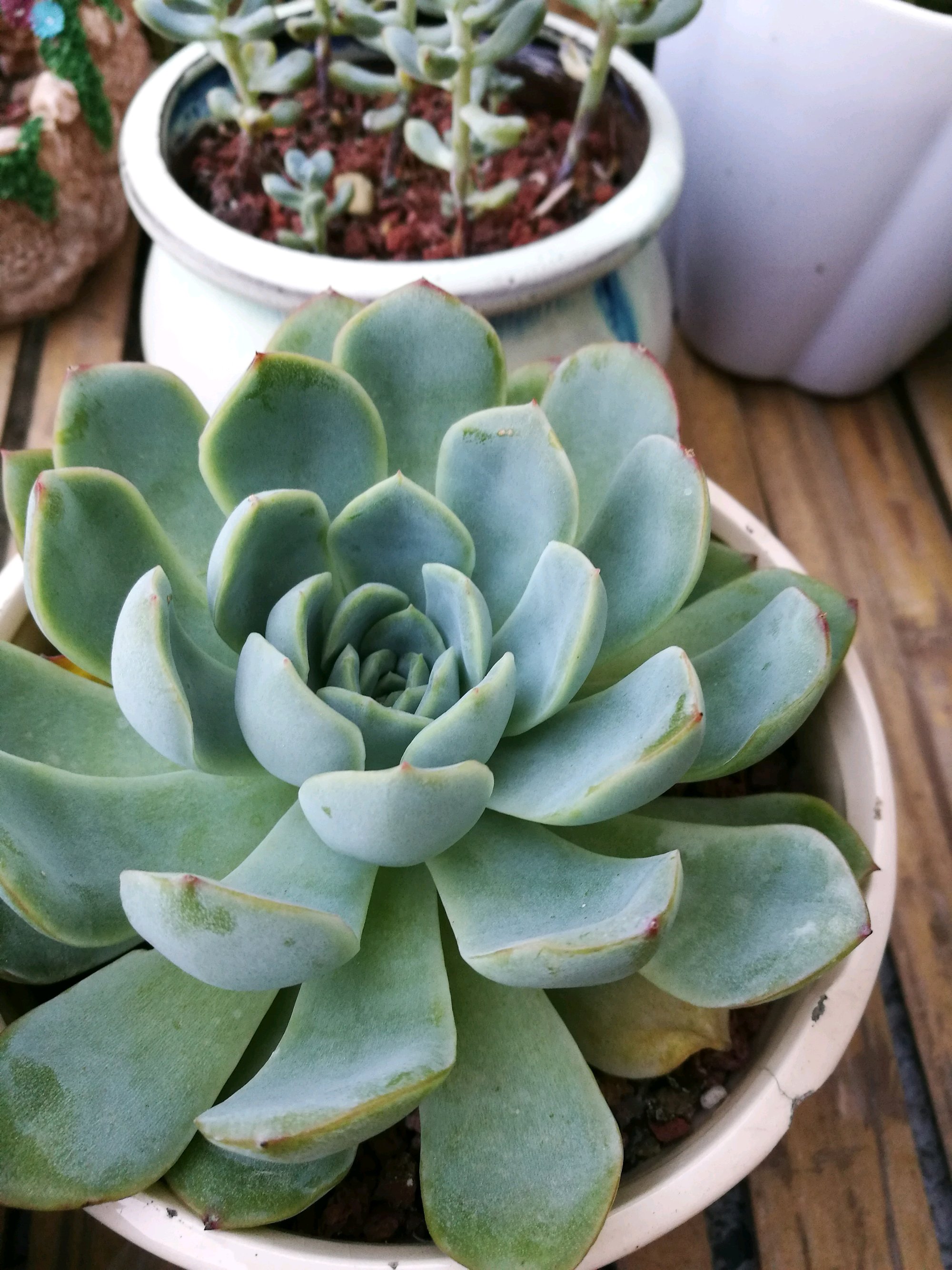 感觉肉们比以前都包拢了,是休眠了,还是缺水呢?请大神指点一二。半个月浇一次,是原来的一半多,露养,早上6点晒到8、9点左右,再遮阳。坐标江苏徐州。新手小白,第一次带肉度夏!