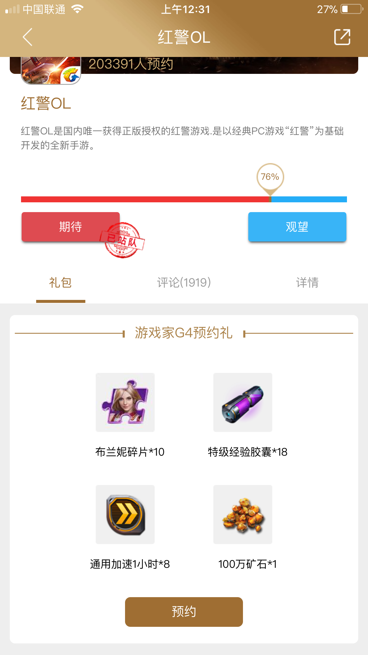 亲爱的指挥官,需要G4用户才能预约,预约礼包里面包含角色碎片,经验胶囊,加速道具等等