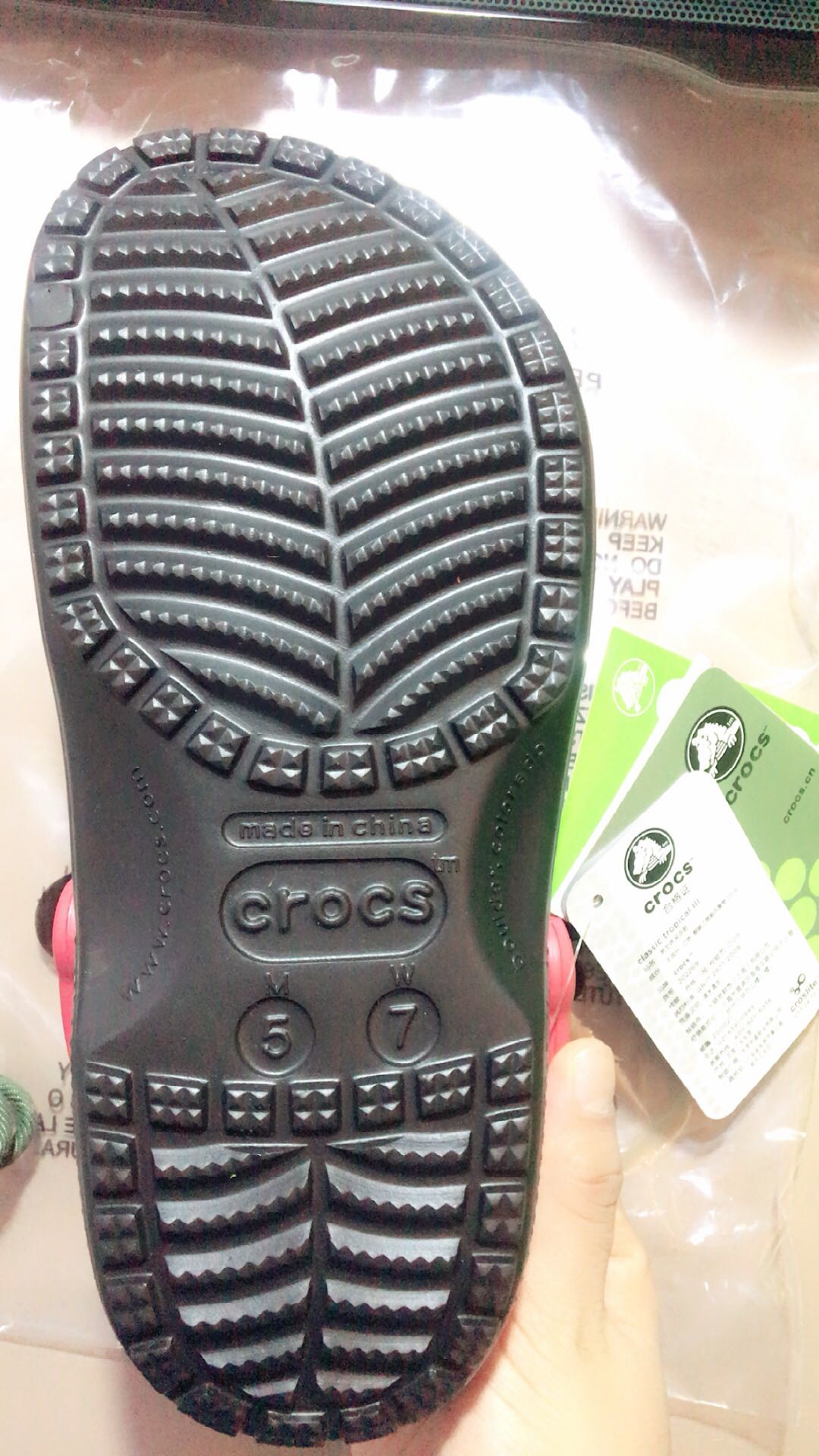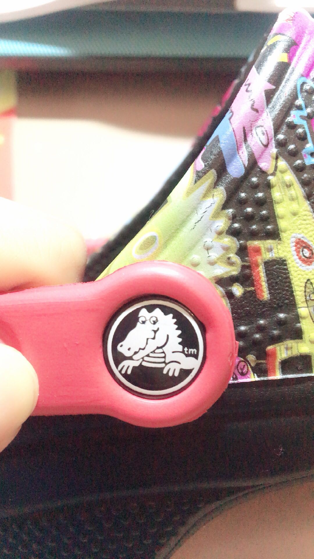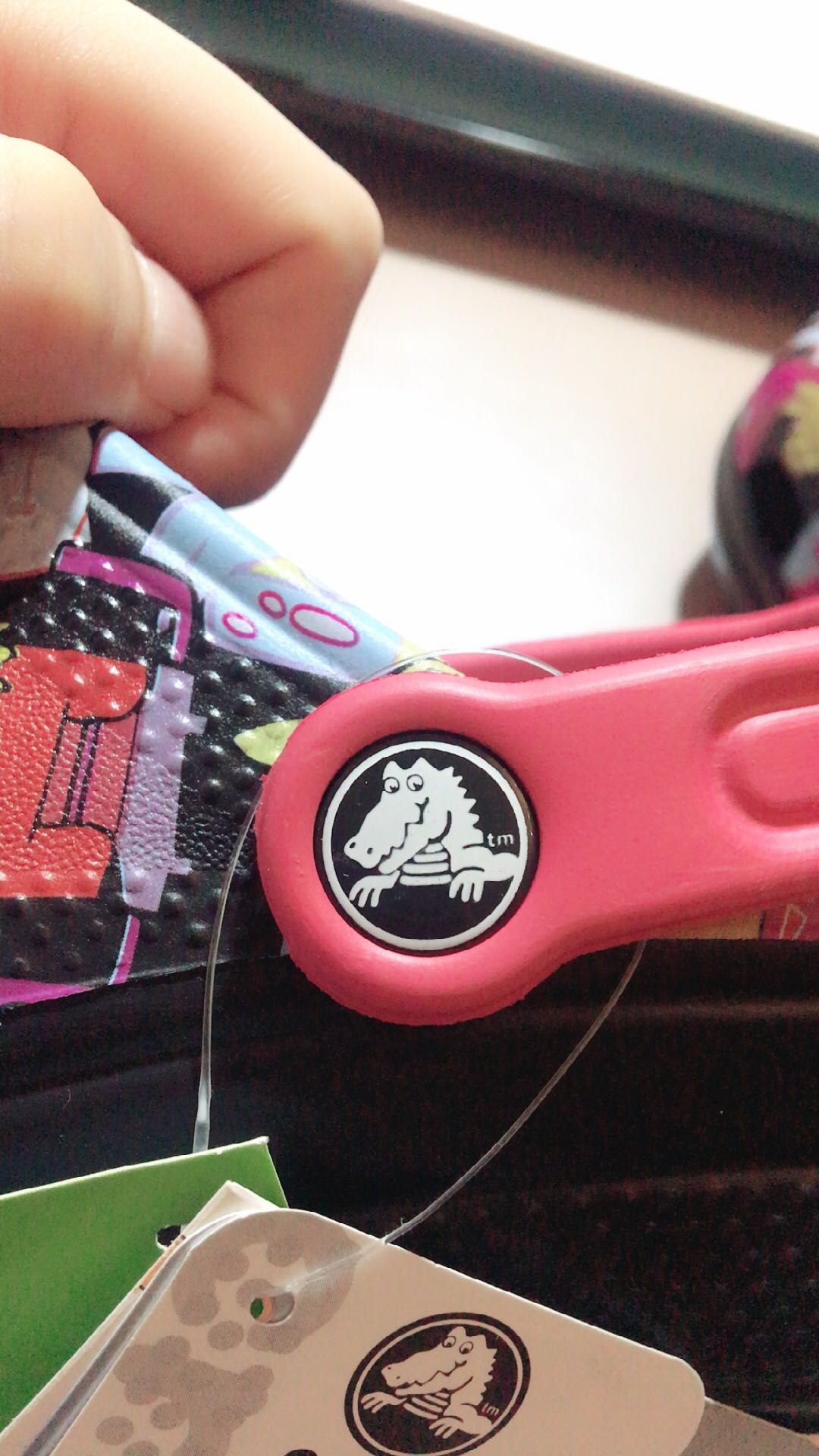 最近买了双crocs汉堡经典伯格曼202194,店家保证是正品,我有点怀疑,而且鞋上的鳄鱼标志眼睛应该是u才对,有一个直接有点模糊,希望各路大神帮忙鉴定一下!!!🙏🙏🙏