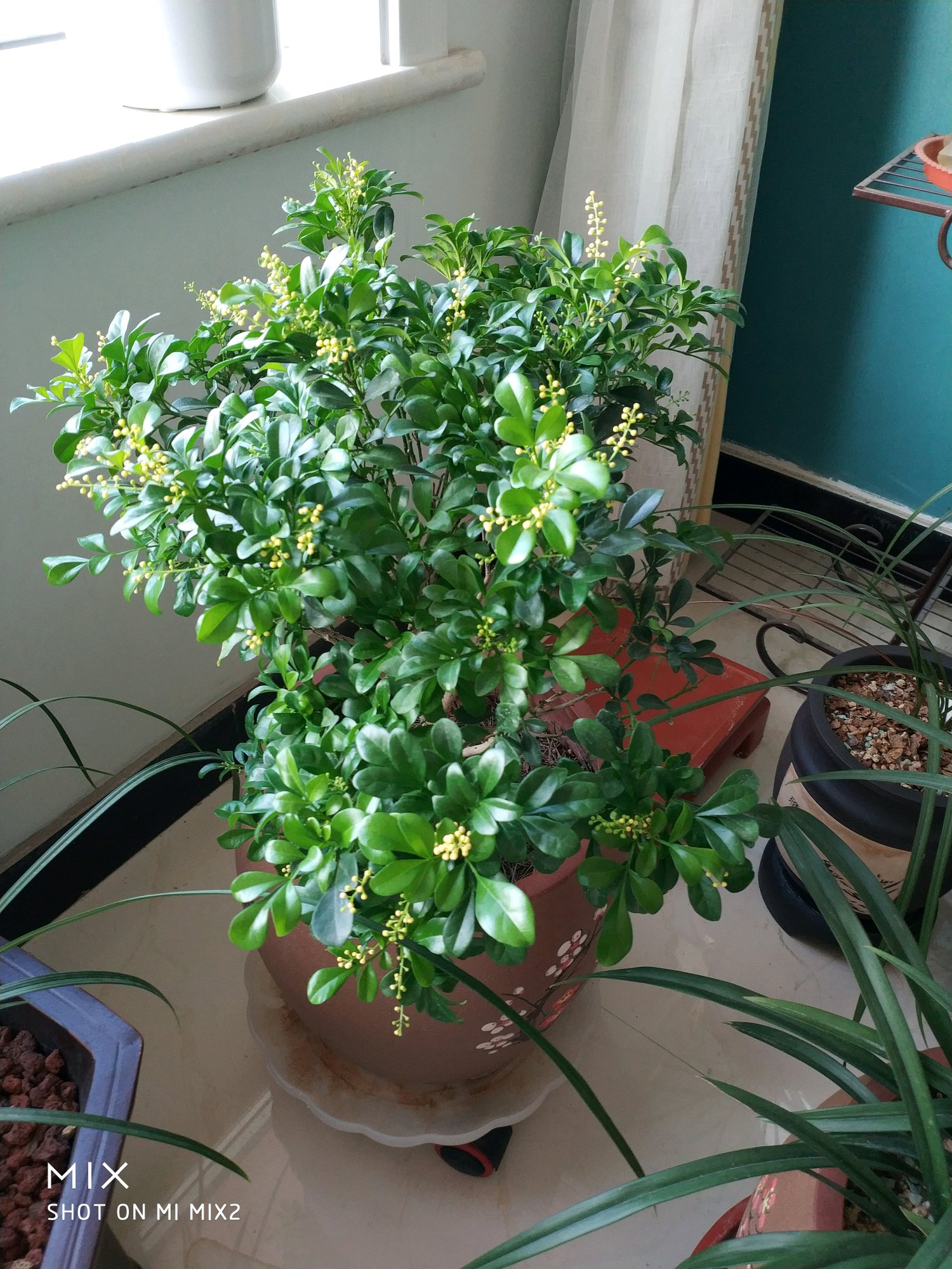 带图顶,这是第二茬花了,比第一茬花香,米兰好养想起来,浇浇水就行,
