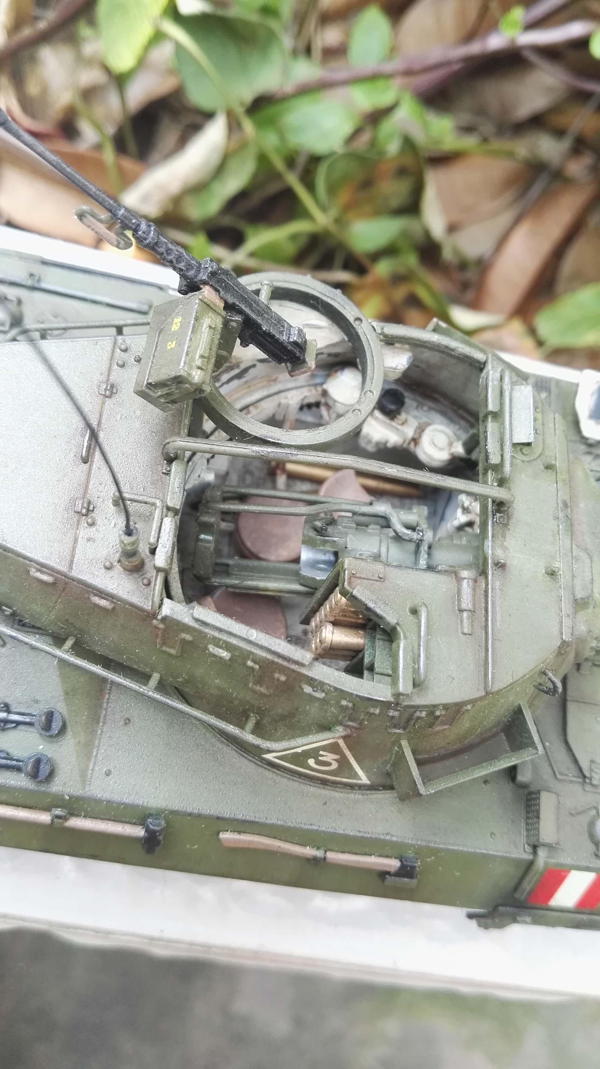 爱德美的板件,总的来说中规中矩,给的补给品很多,但是一个都没用上;组合度还行,就是上下车体之间需要补缝,水贴很不好用,没给发动机内购算是很遗憾了,主体用的田宫喷灌橄榄绿和消光白,履带和轮缘橡胶用的德国灰,把水贴换成了田宫英军的(虽然英国只有2辆)。