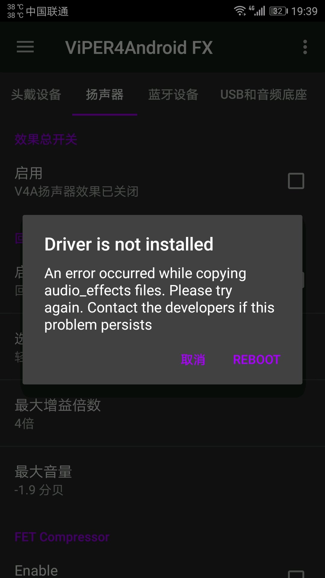 先安装magisk里面的selinux manager,安装时设置成permissive模式。重启再刷v4a试试行不