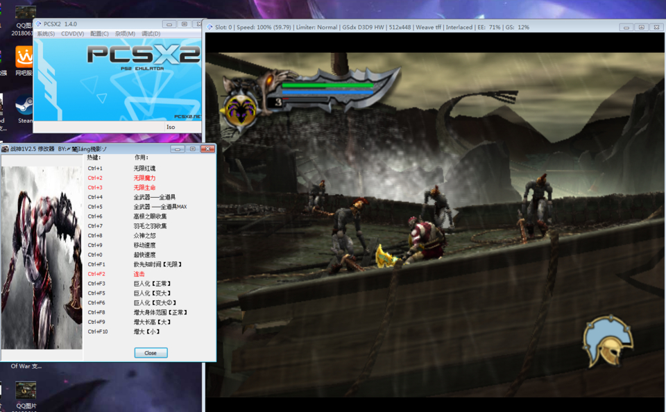 但是我在网上把PCSX2所有战神1的金手指挨个试了一遍,但就是无论如何也不起作用。