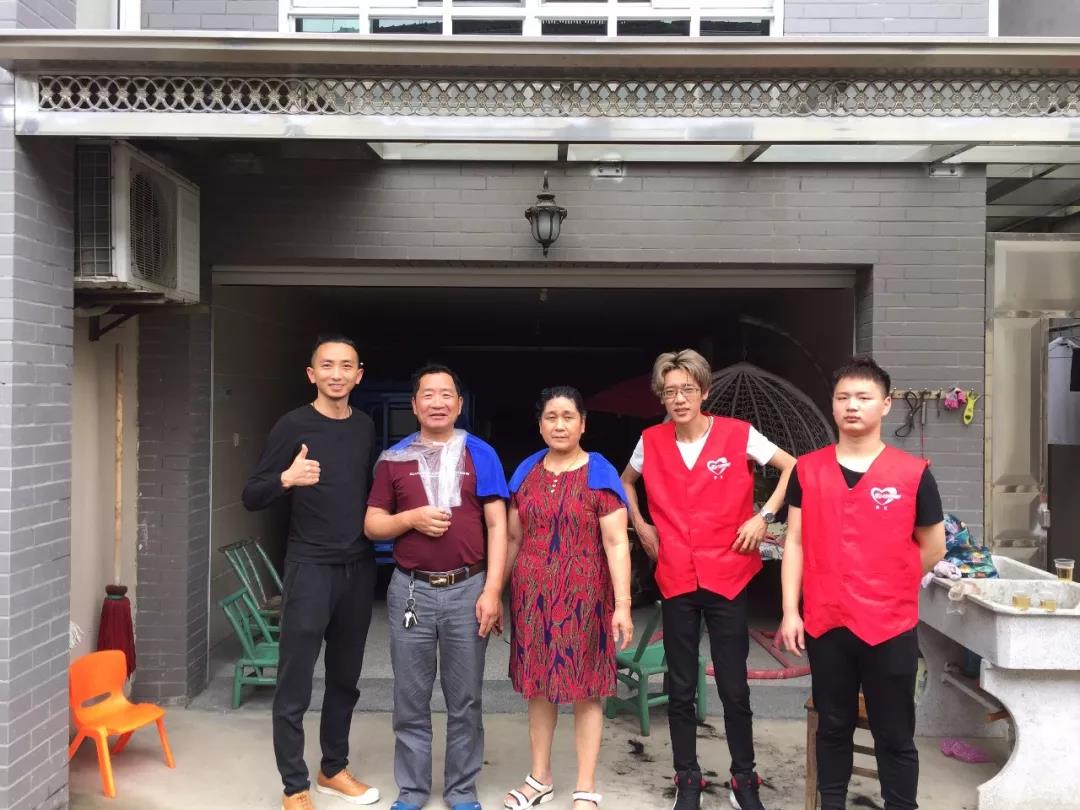 近日,灵峰街道浒溪社区的热心居民陈宗先生带领两名员工为下扇安置小区的邵安成夫妇提供免费理发。