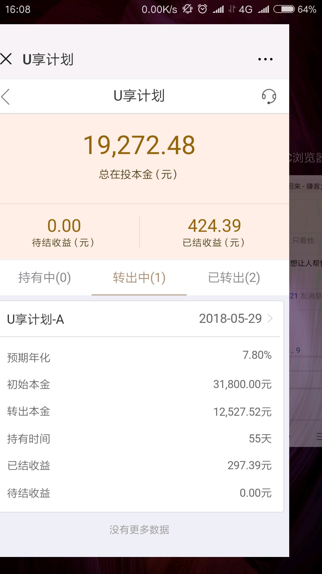 你还有转出,同55天我一分未回,你是幸运的