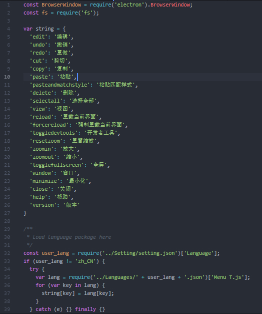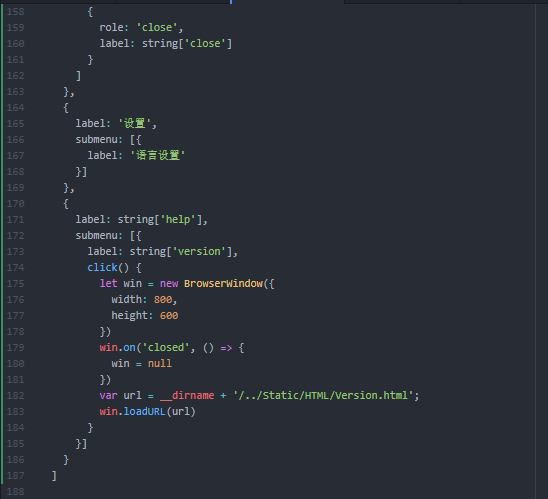 来得知有哪些语言包。然后在菜单中可以自由的切换,于是(下面是调试过程中的代码,第196行原先是console.log(this.label),鼠标点击的结果是undefined)