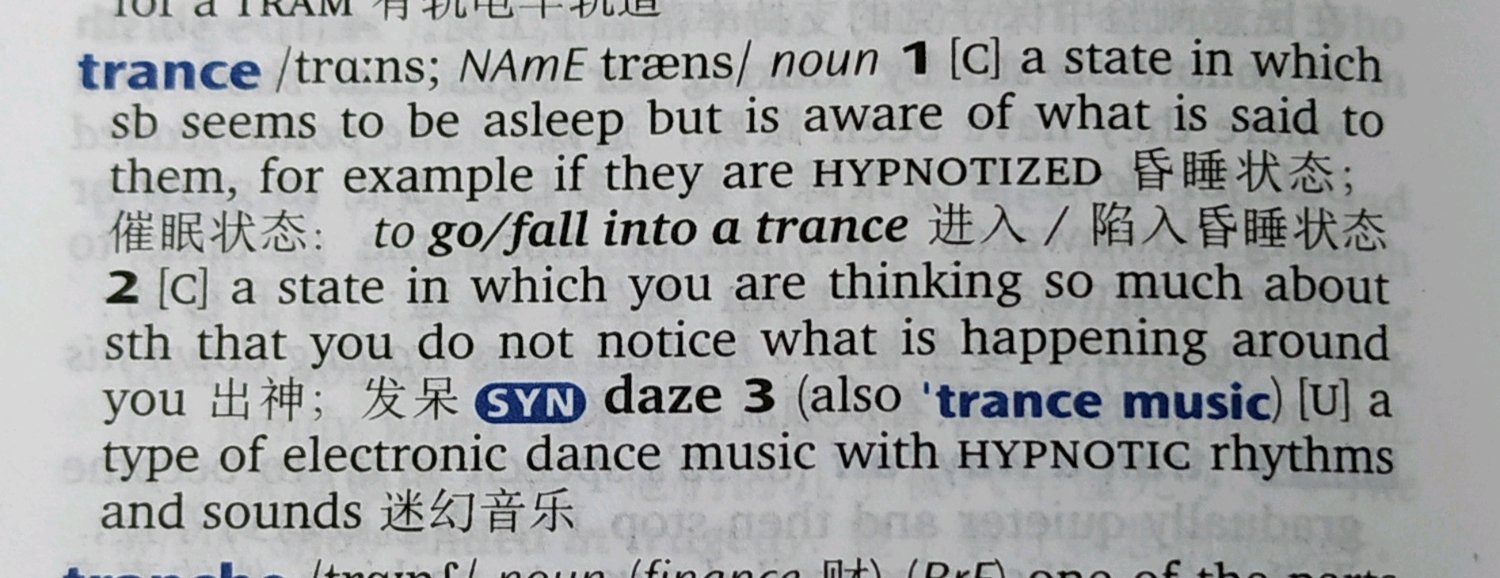 睡了没毛病啊,参加trance的第一个义项