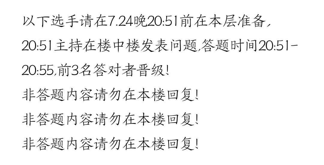 3.本场所有问答结束后,将在本贴公布答案和晋级选手。