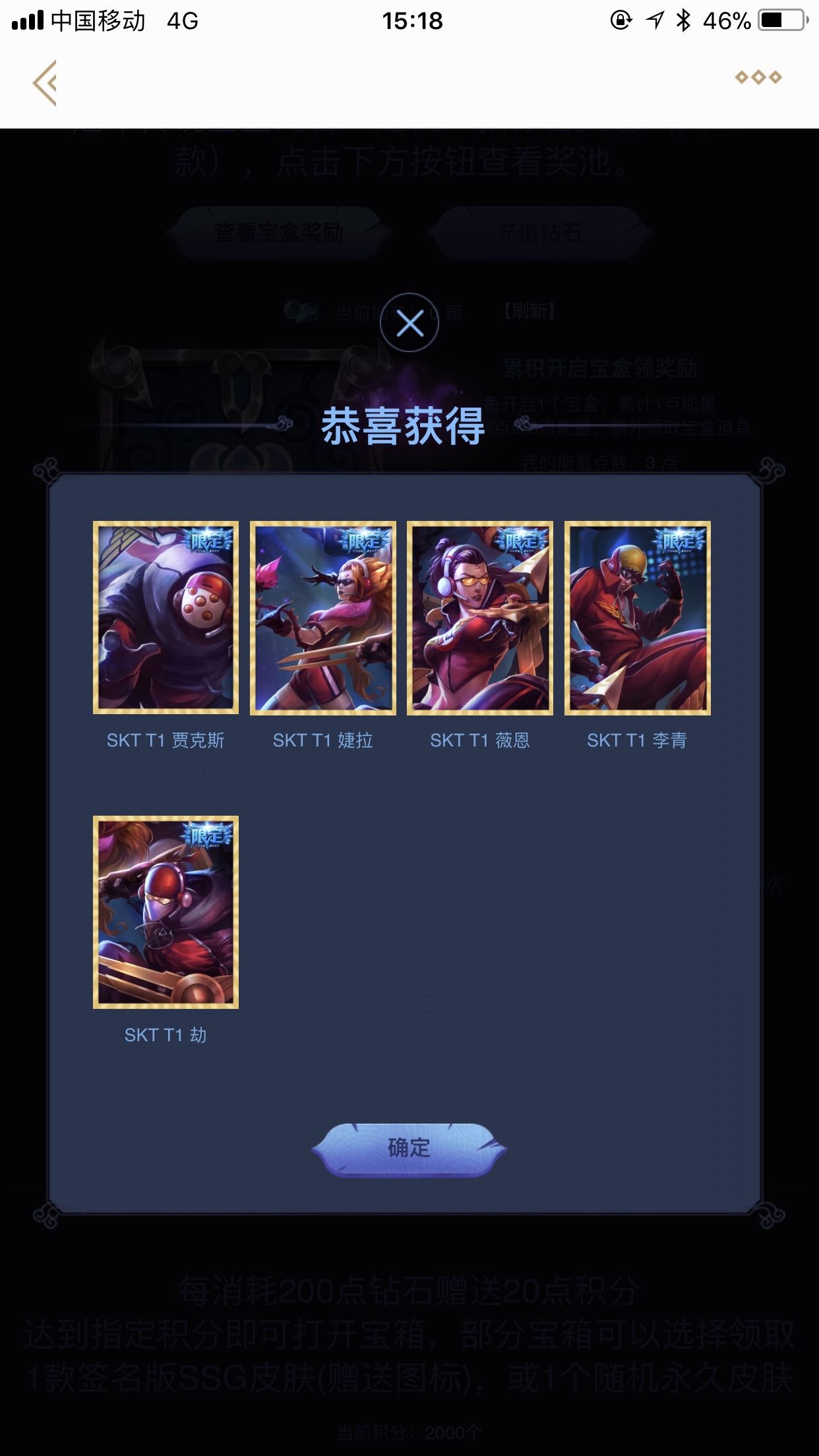 花了700两个宝盒,跟你前两个皮肤一样的。1500的时候还是只有两个宝盒
