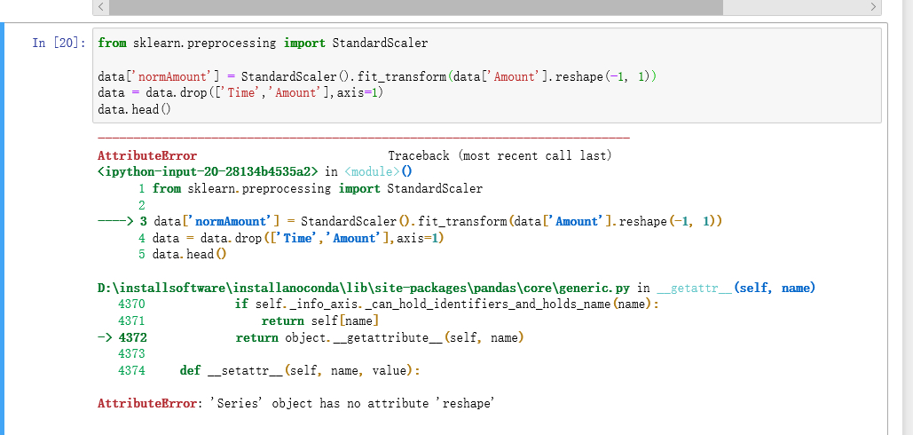 求助,代码提示: 'Series' object has no attribute 'reshape'