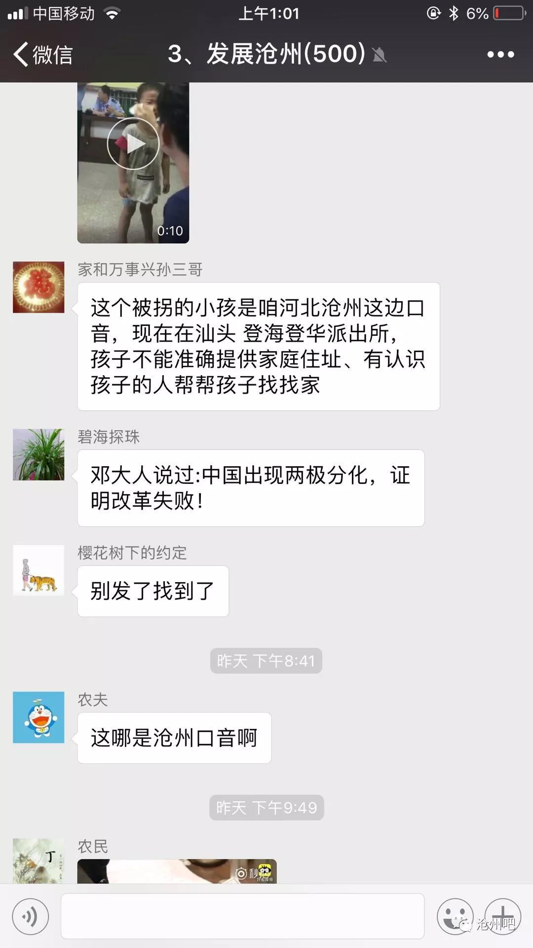 拨打了派出所电话,派出所民警告诉小编,这篇视频是三天前,也就是7月21号发生在他们派出所的,而且小朋友也不是被拐卖,而是走失的,并且已经被母亲领走了。希望广大的沧州网友们再看到此类信息的时候,一定要确认一下地名,还有时间,最后百度搜索一下联系方式,确认无误后再转发!