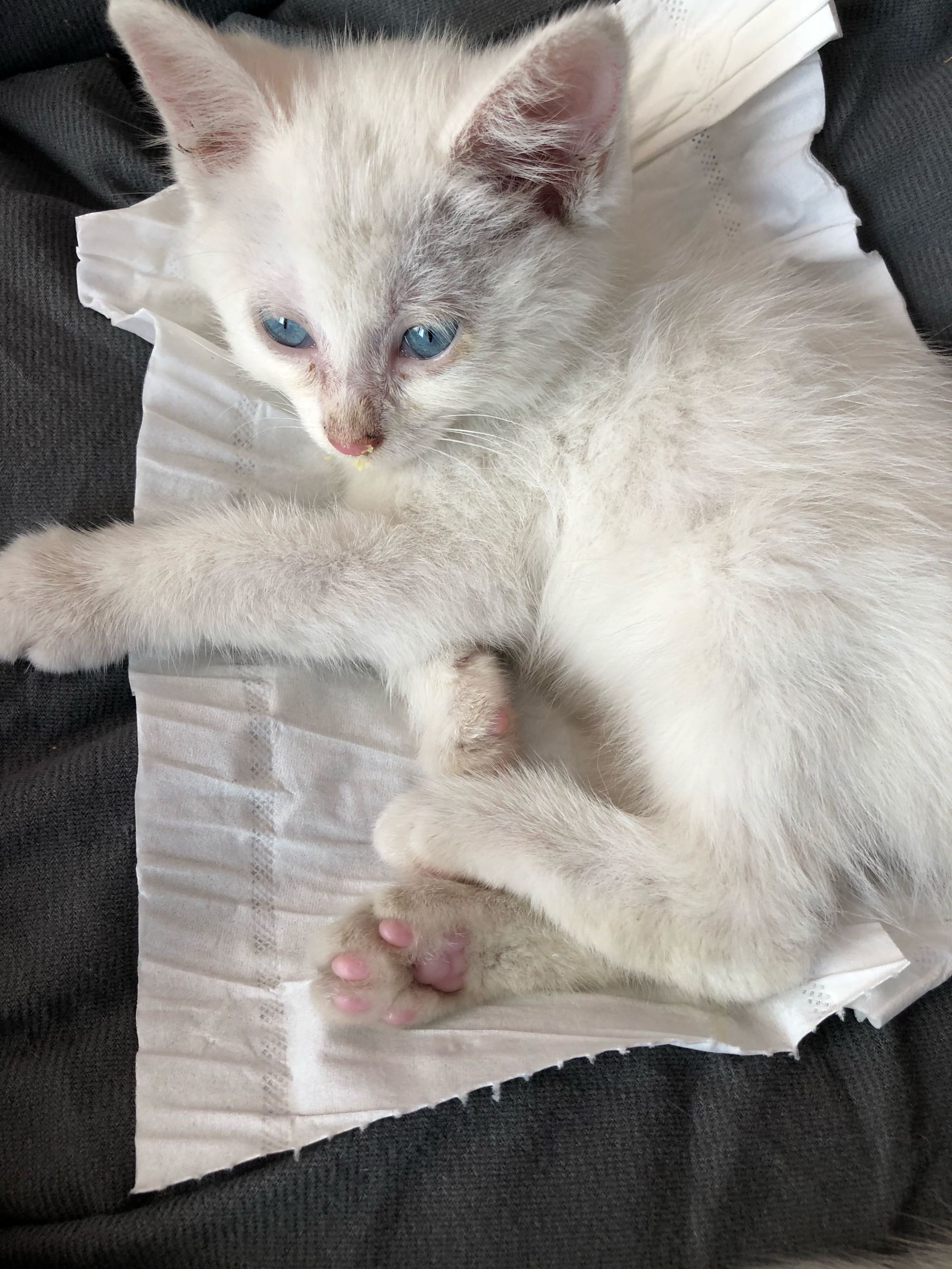 昨晚捡了个猫,是白英短吗?下半身都是便便,左腿无法正常站立走