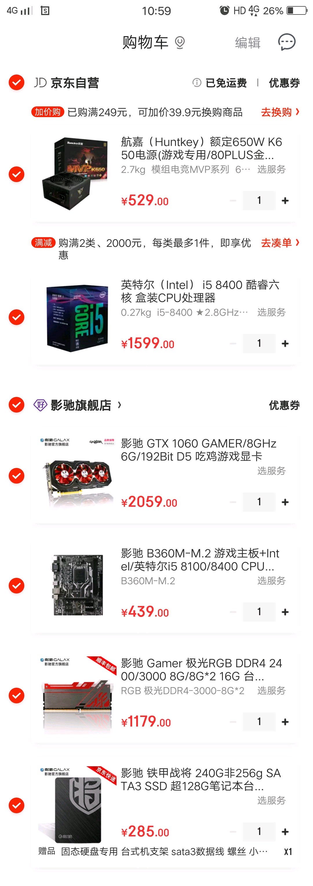 想组装个主机,但是什么都不懂,想在京东买配件自己组,玩剑灵,