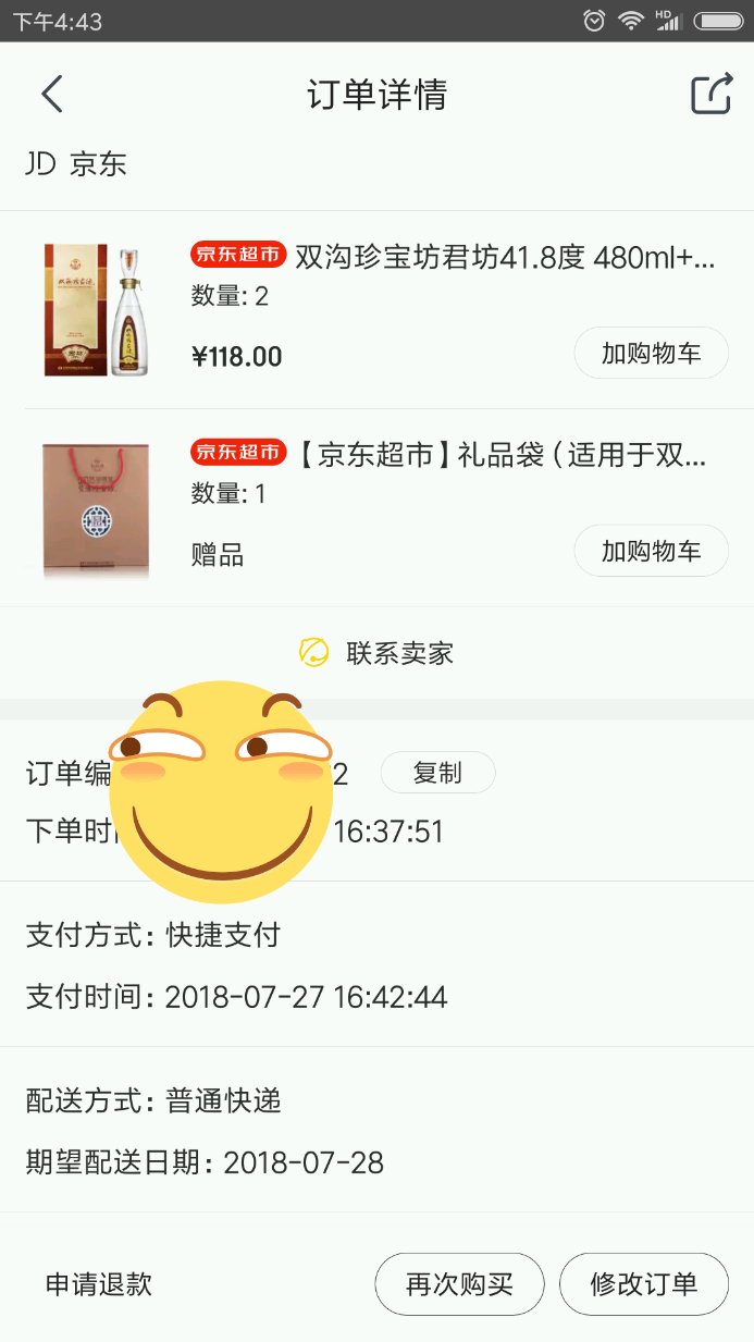狗东领券处搜 双沟 列表里有199-100的券一张,进券搜双沟,是第三方的货,也不知道硬不硬。最后结账用储蓄卡优惠2元。118*2-100-2=134