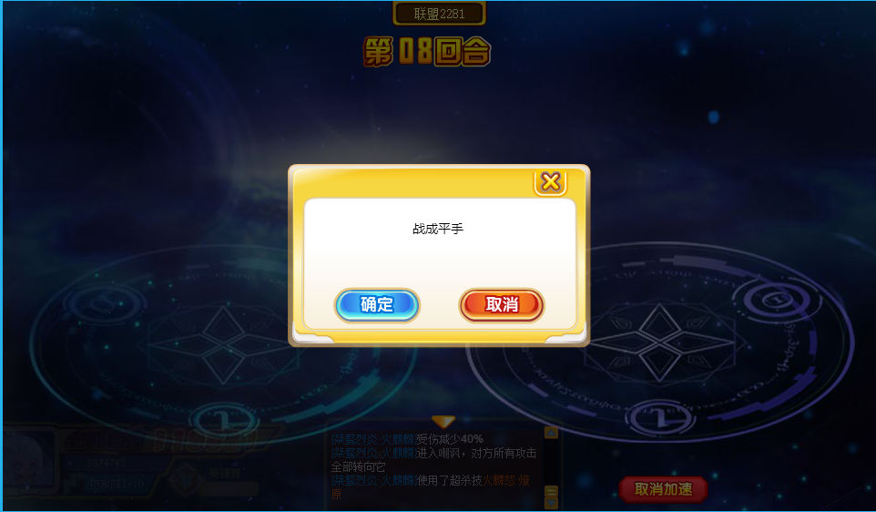 8回合是固定打8回合。但是我在第八回合的时候会弹出超出上限,然后就显示战成平手,伤害不结算,次数不消耗