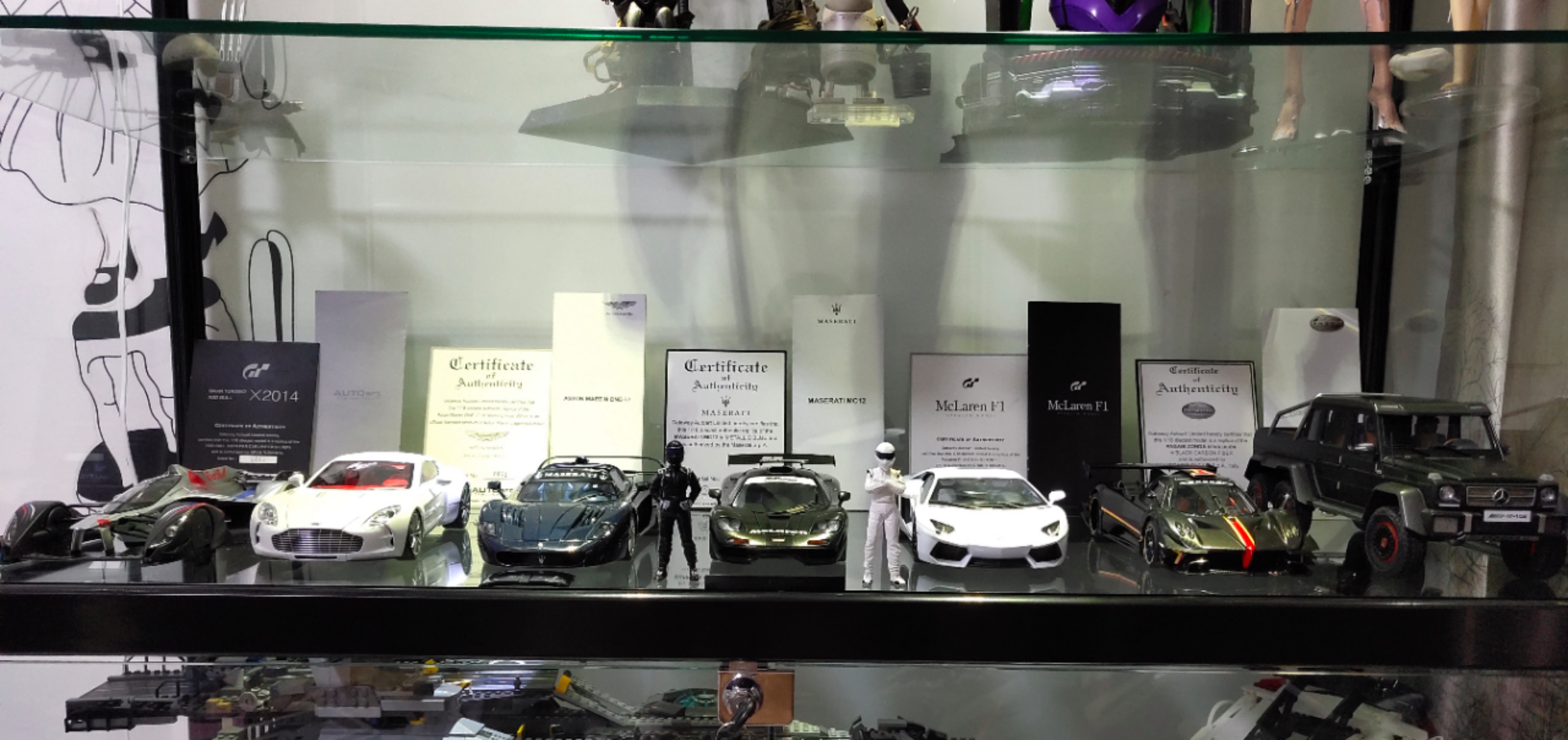开始摆的时候是这样的,感觉又有点不对劲。睡觉前折腾从新摆了一次。不清楚车模应该怎么摆放比较顺眼,还在摸索中。