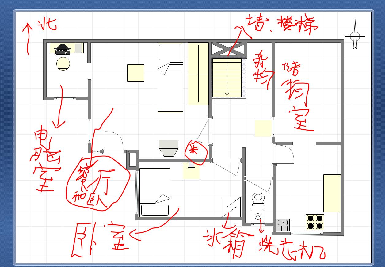 师傅帮忙看看我的户型图,跃层上下,大门朝北
