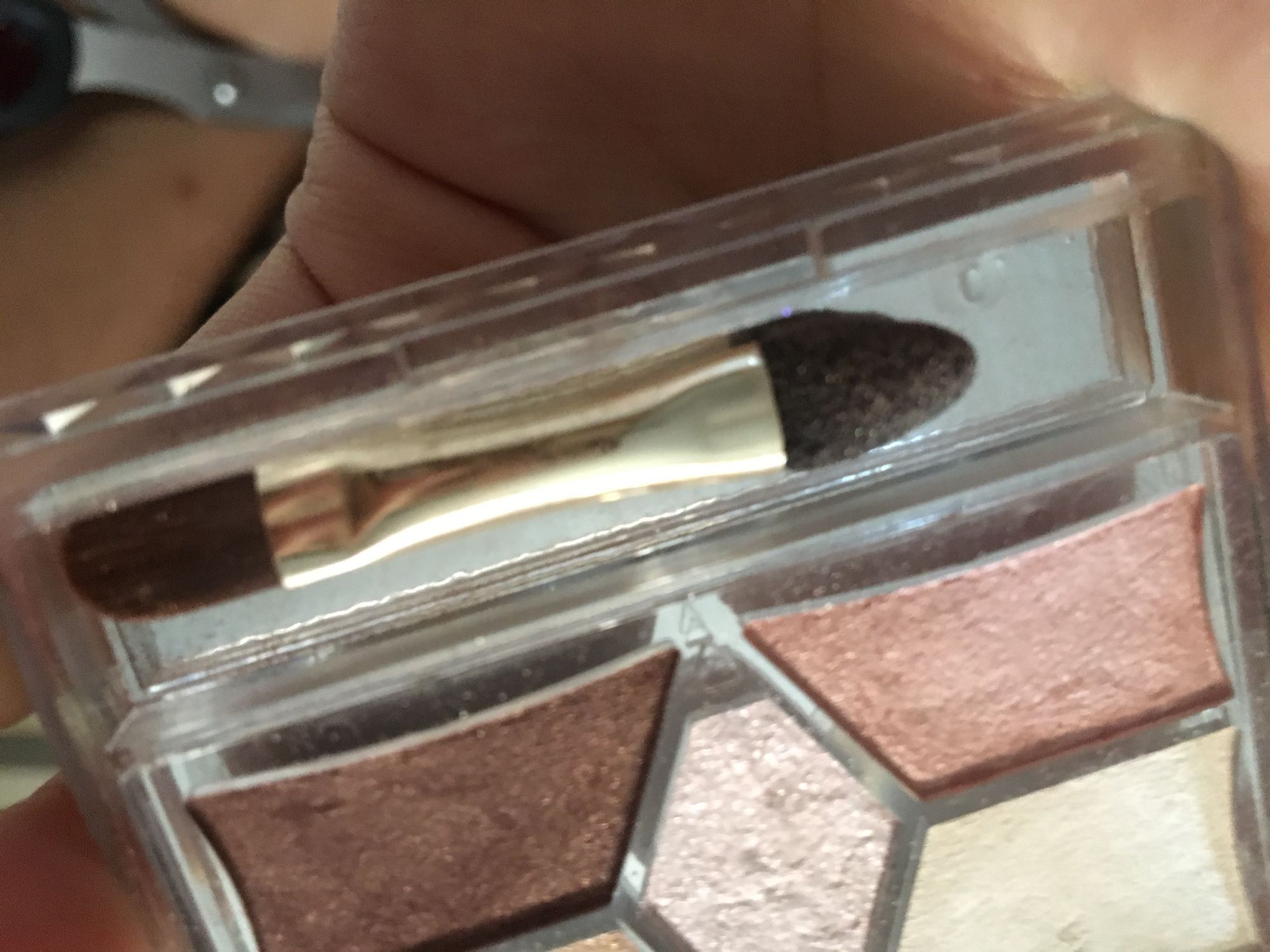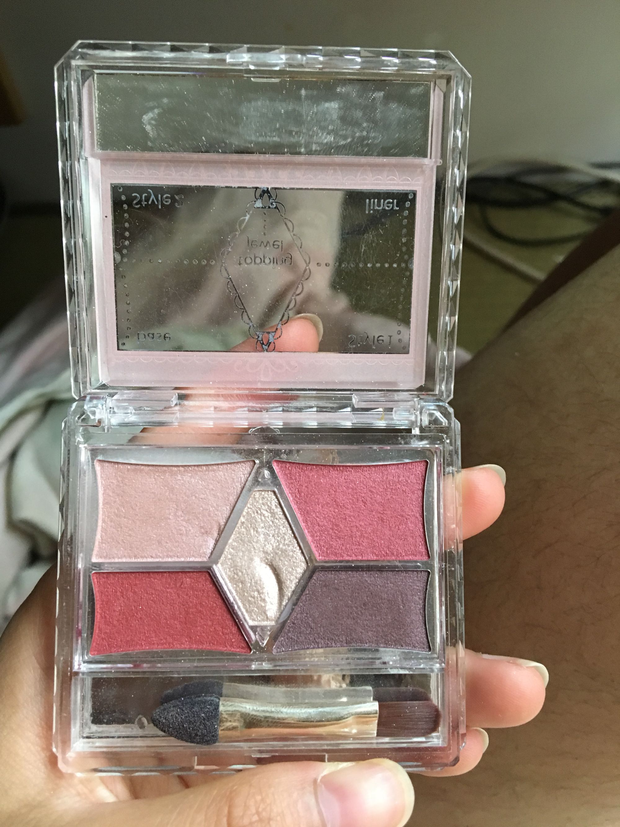 据我的最新发现 淘宝上也出现了棱形没有全部填满...四个格不是长方形的假货了。不过假货的刷子还是很好辨认...刷头是比较圆的。并且后面アイシャドウ这几个字全部是一样大