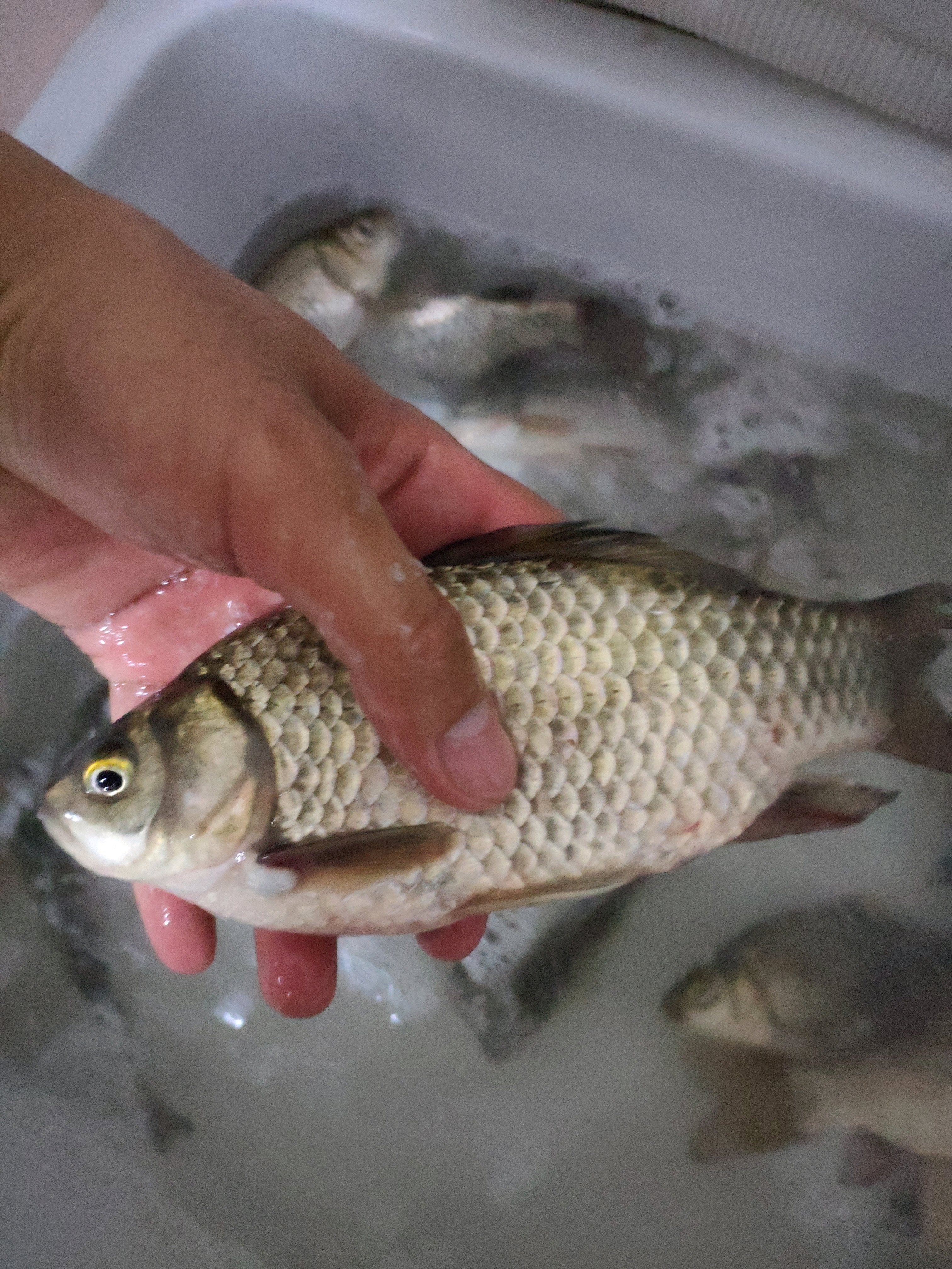 然后又开始下雷暴雨,下了一个多小时……水都涨了不少,中午过后鱼开始开口,连杆~都是大翘嘴大鲫鱼,很爽