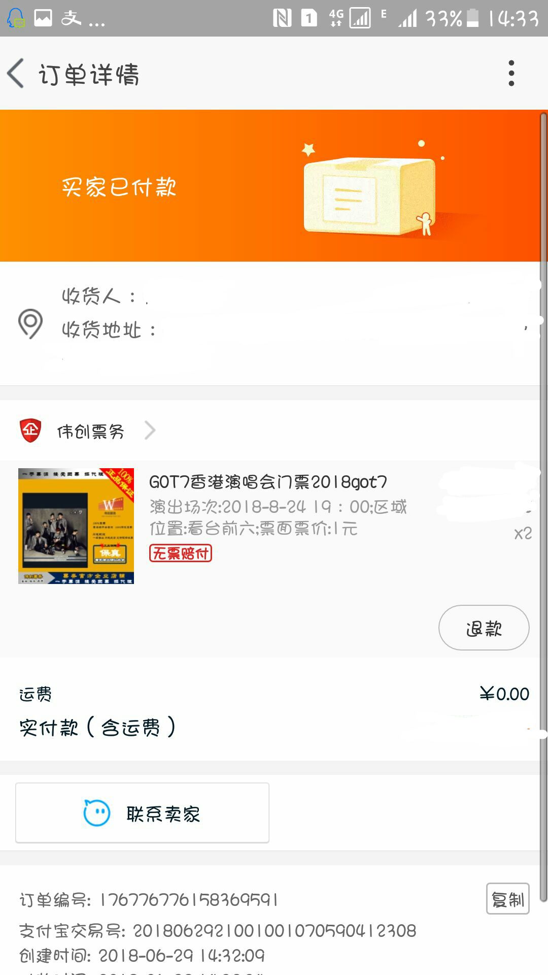 出一张8.24香港场看台前六排的票子