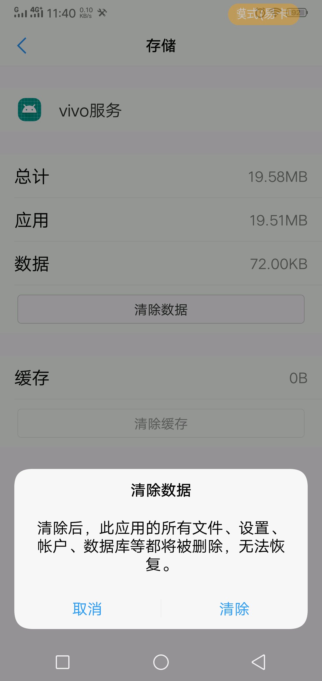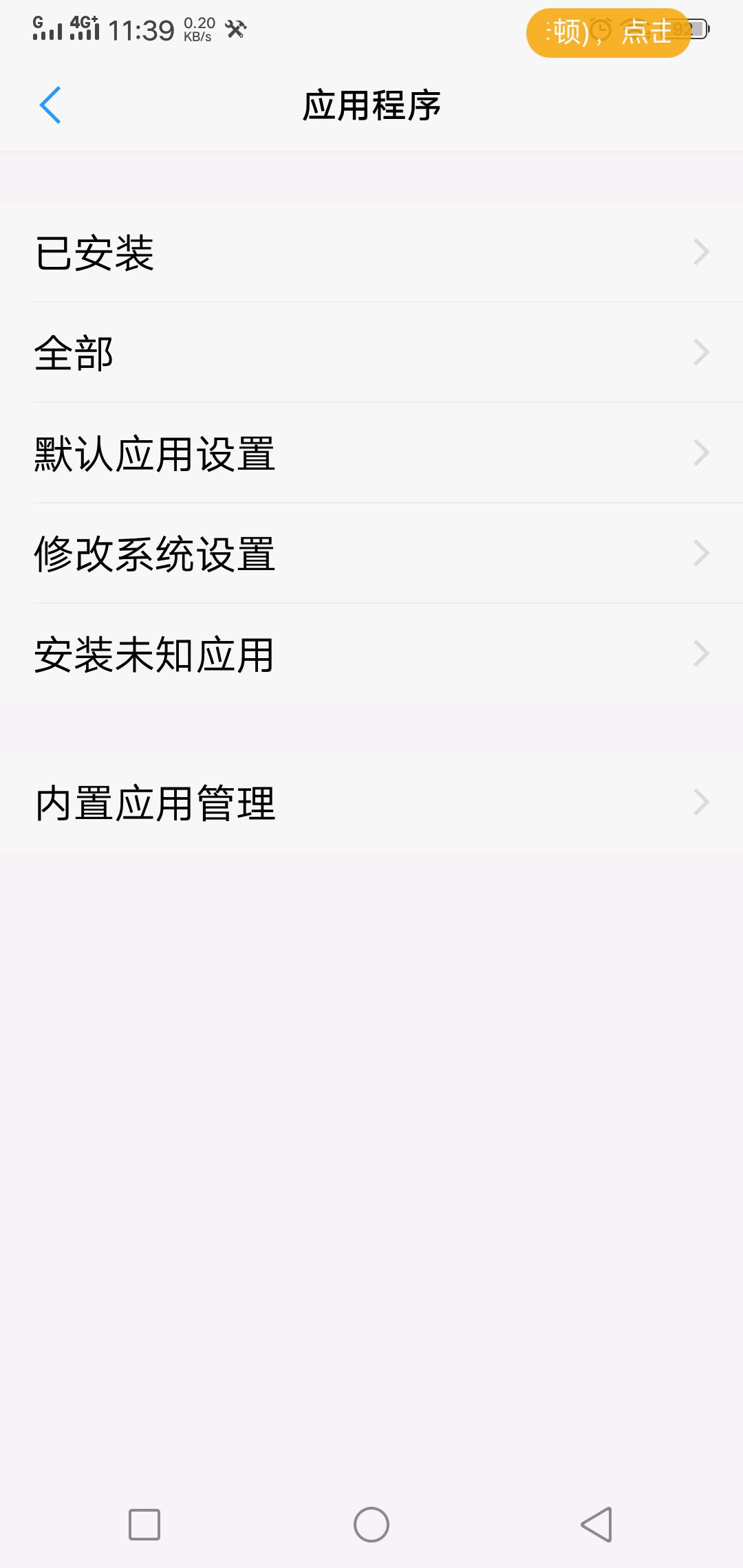 这个小黄条是由一个名叫“vivo服务”的程序控制的,以前我们的老办法是强制停止“vivo服务”,可现在已行不通了,下面楼楼就教大家新版的方法