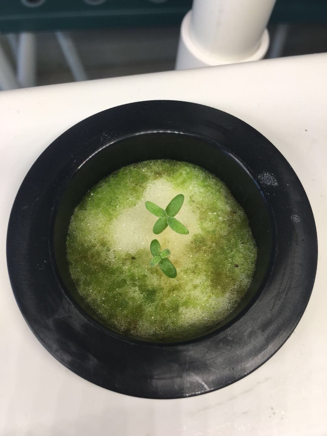 水泡的太深了,海绵底部刚沾水就可以了,我去年用水培搞过两个月,但技术不到位,生长太慢了,就没有继续研究下去了