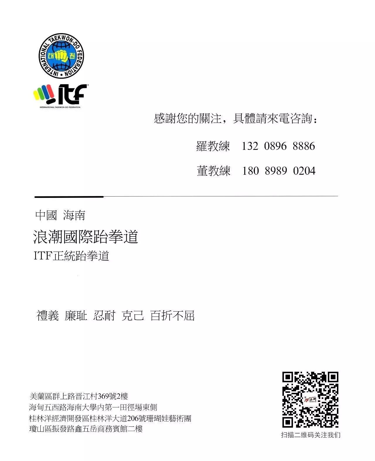 海南到底有多少个派,我有点晕,也知道好几个itf道馆