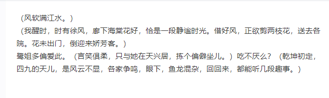 【见他招来小二点菜,飞快缀上句】我同他一样。【又几朵思量,再点上几许下酒小菜,迨及那伙计去后,始娓娓来】