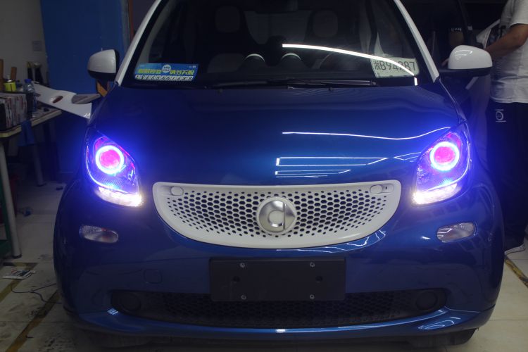 SMART改装车灯 改装的氙气大灯加红色恶魔眼