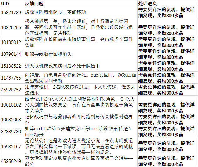 1. 对于第一个提交优质且有效反馈的舰长,会发放 200 水晶福利(已知问题,发放100水晶)