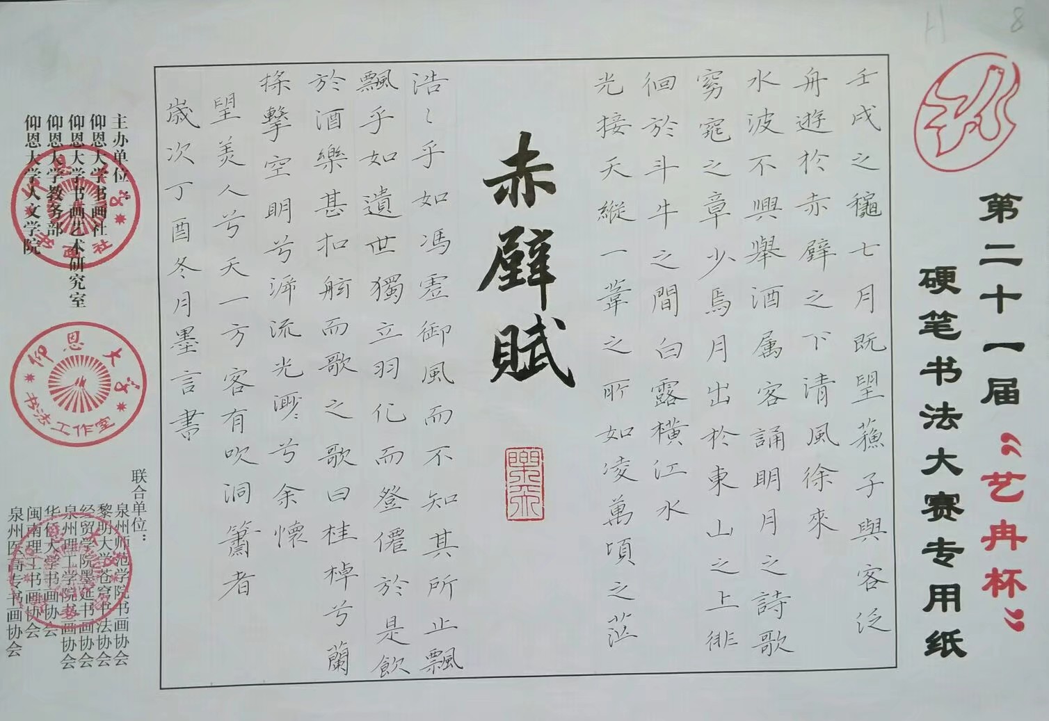 硬笔部: