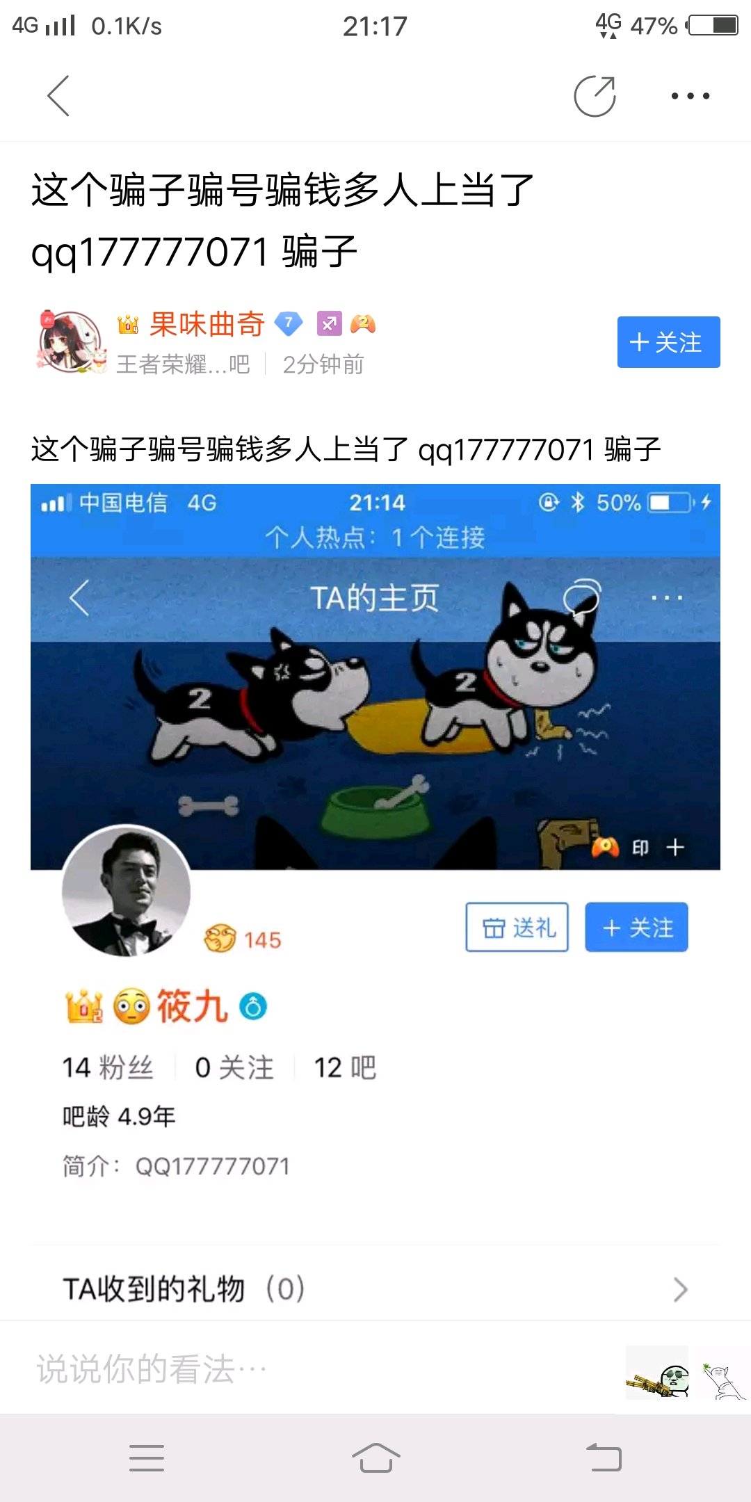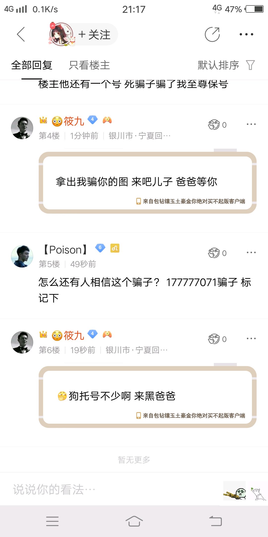 又发现一枚骗子狗托小号 爸爸话放这 请你放出我骗你的图 来吧儿子