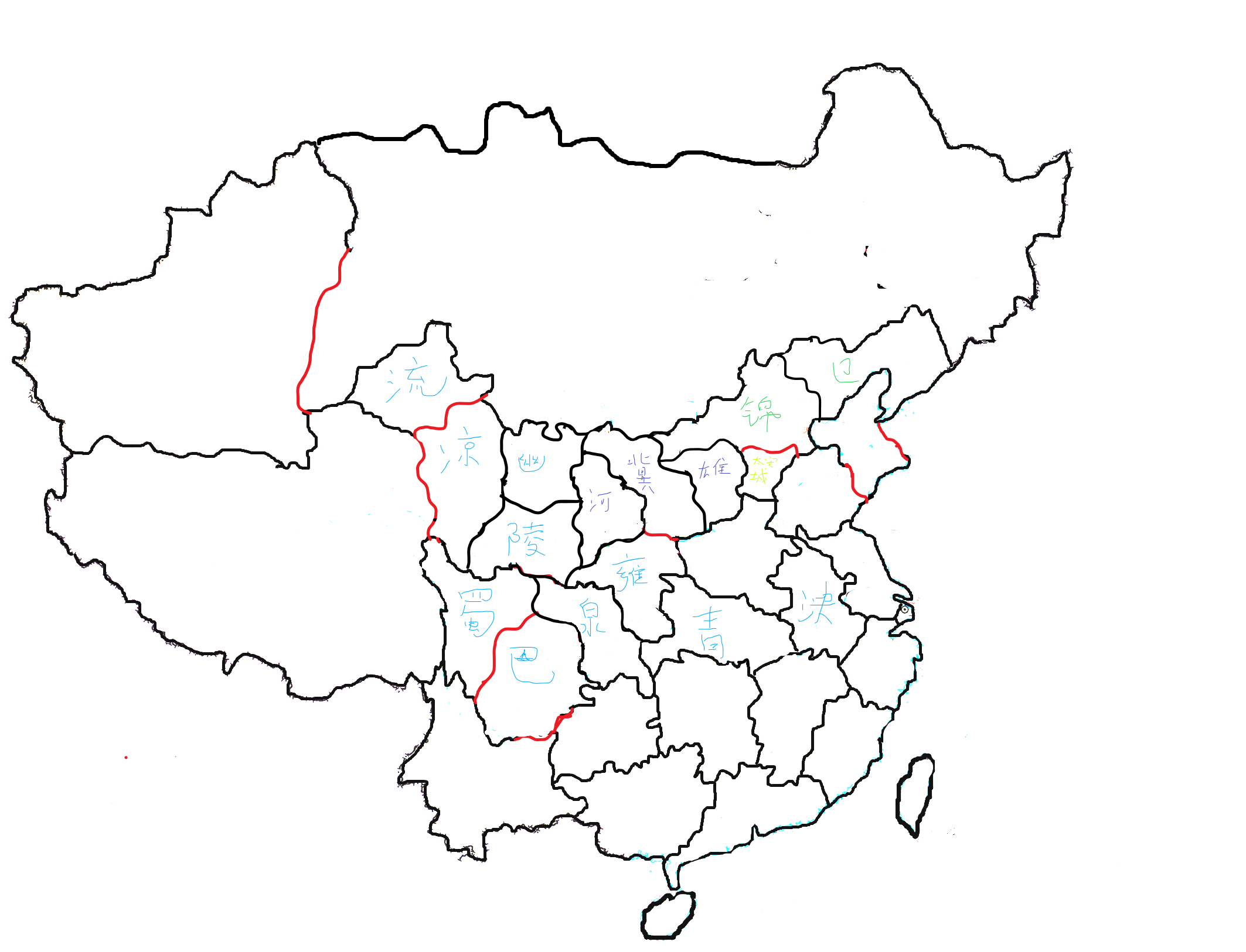 中国地图。参考北宋(离阳估计),辽和金(北莽),宋朝地图和战国各国分图一起看。然后看东汉三国十四州地图。河西走廊过去的西域(新疆那边)。。。。。。。你心里没点赫拉克罗斯吗?