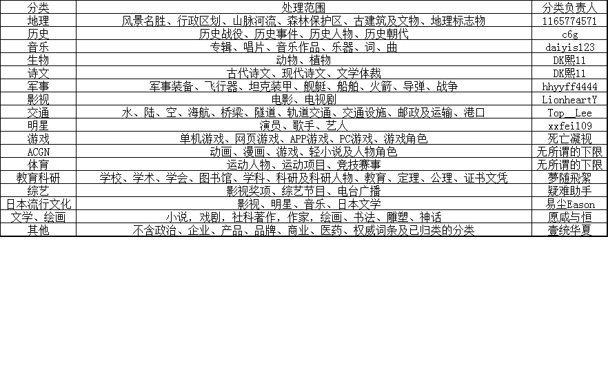现附分类负责人名单