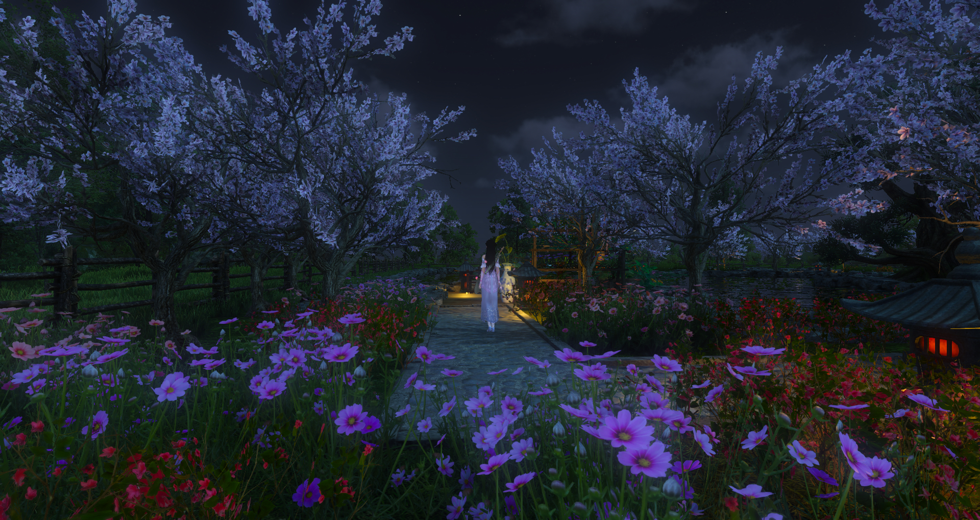 湖心亭,把师傅抓来当演员截图,太穷了,河灯莲花蝴蝶什么的都很少,以后会慢慢增加的,凑合看