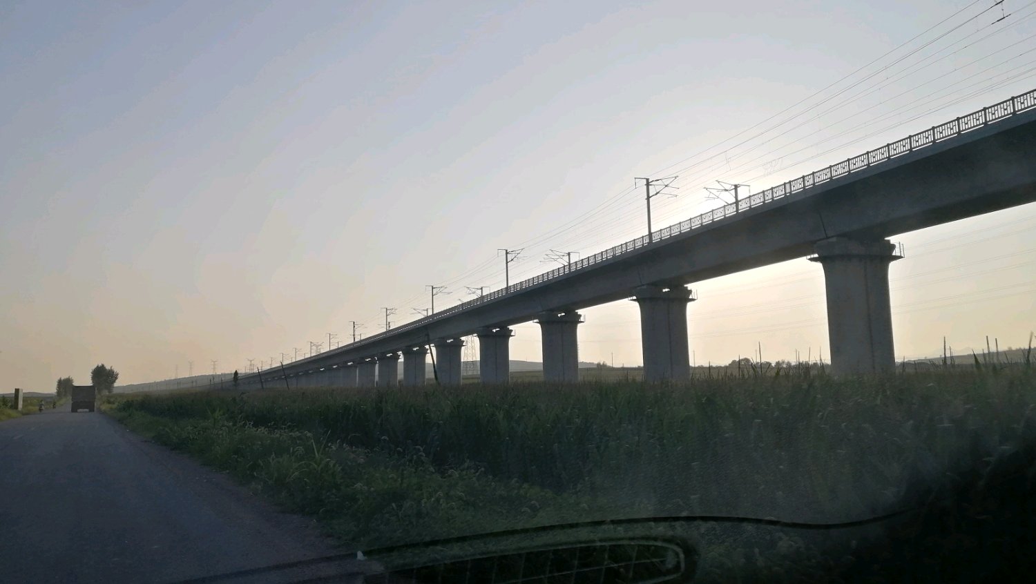 在看一下京沈高铁公皋村的组图,晚上六点,自东向西开车拍的
