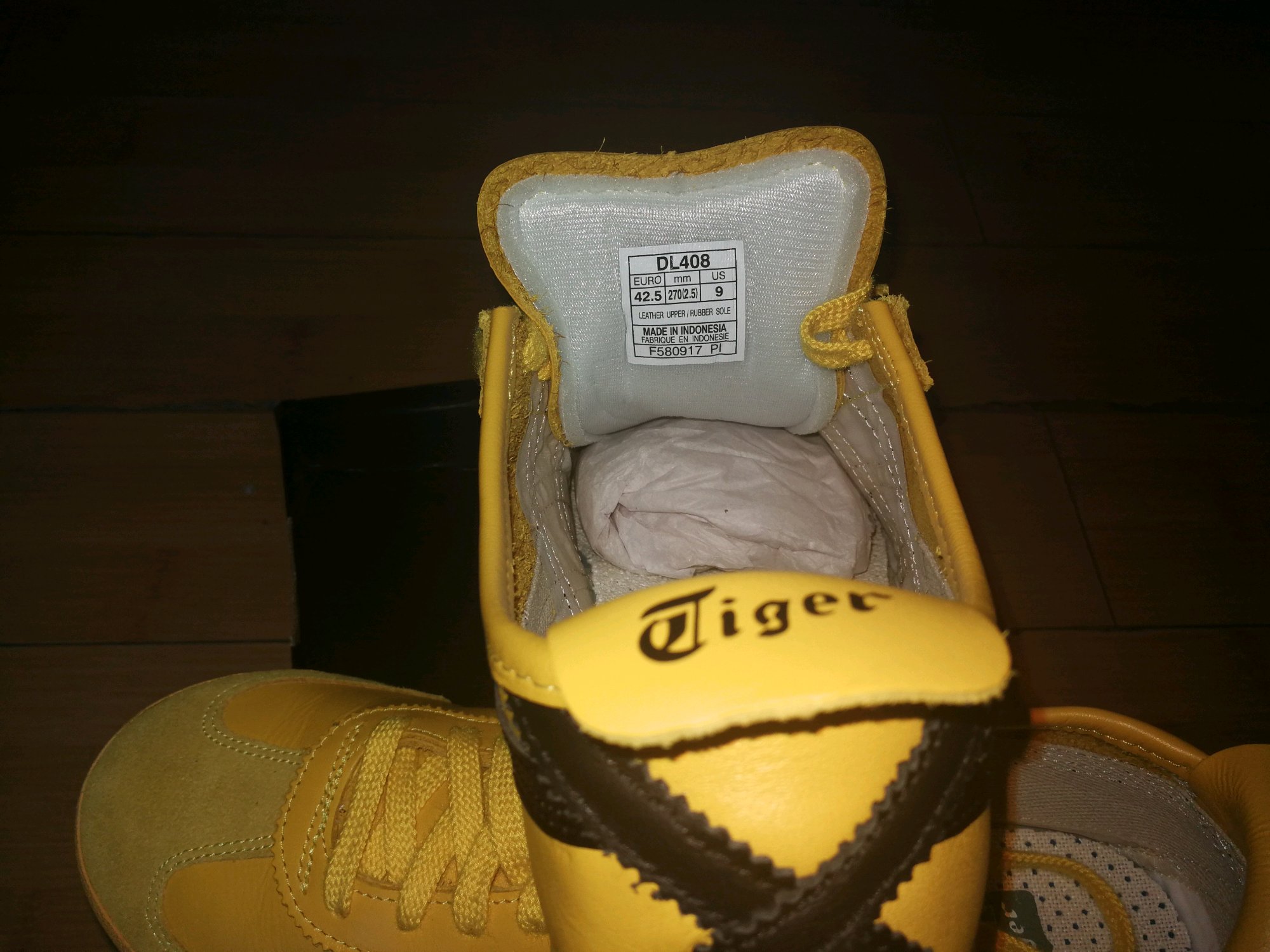 【Tiger】网入 求大神坚定真伪。经过对比和以前专柜买的布面的 同一尺寸,鞋底不一样大,比布面的鞋底略大,有些慌。补图重发