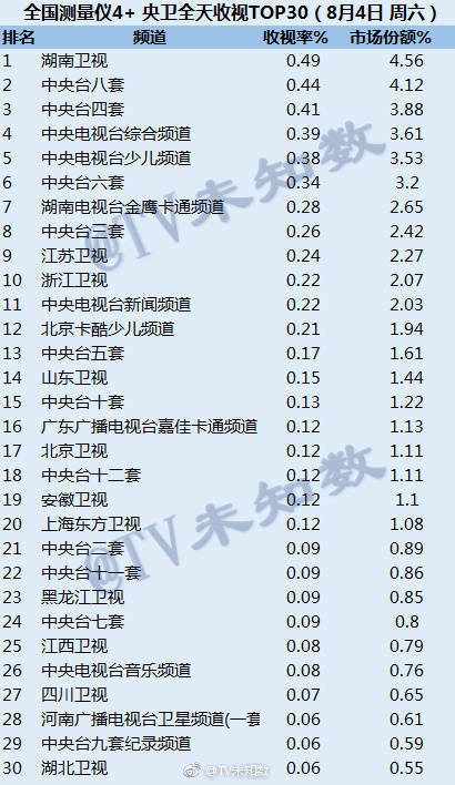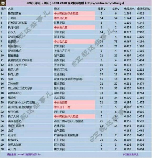 8.3-8.5(周末三天收视汇总)